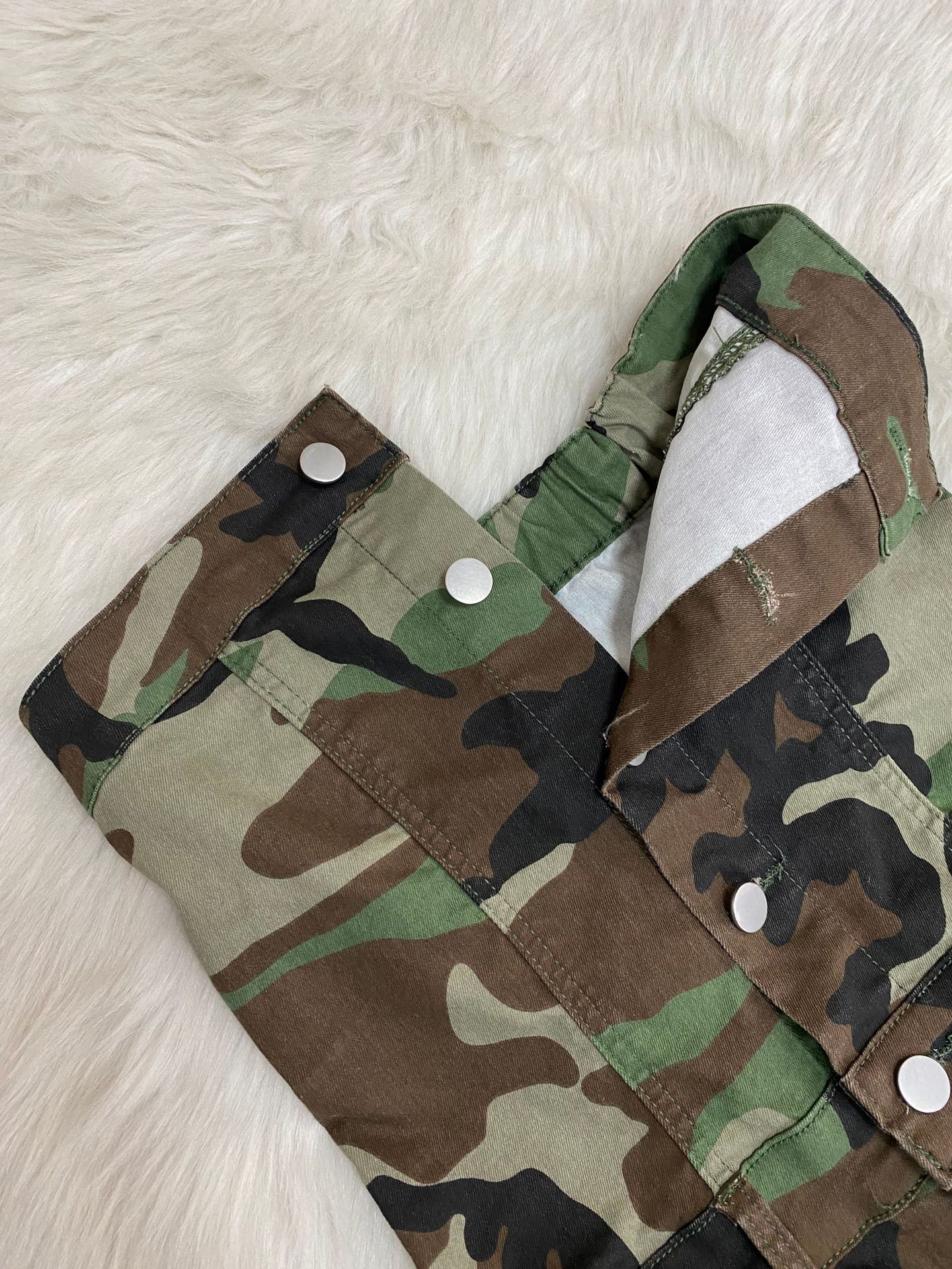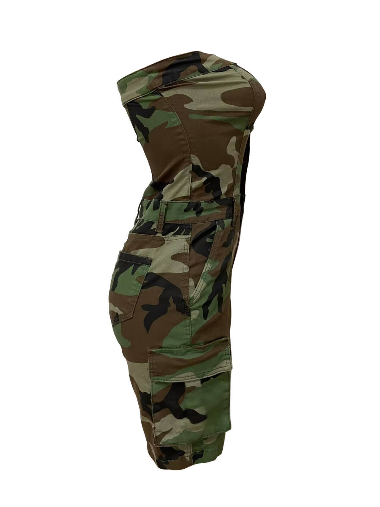 Bodysuit Openwork Buttoned Camouflage Pocketed Shorts Item NO.: LD24371