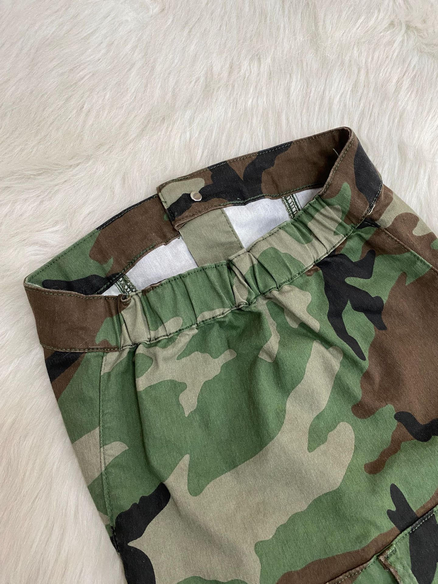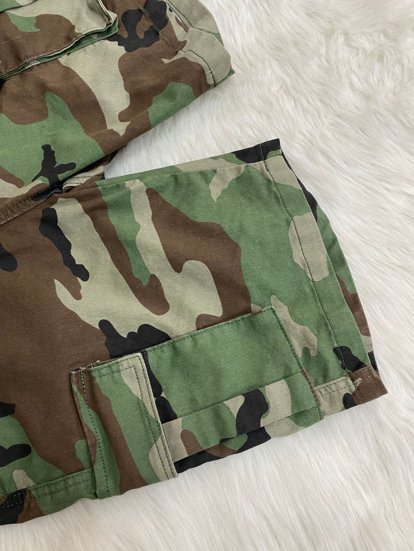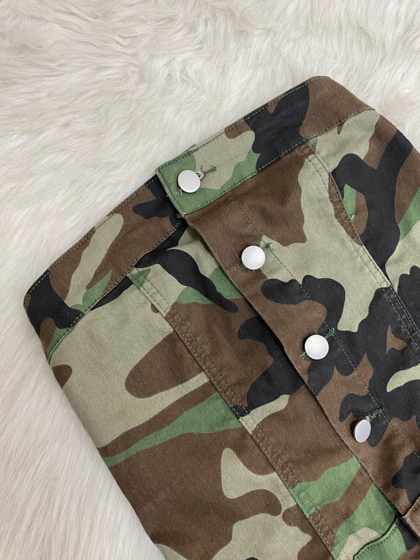Copy| Product Name | Bodysuit Openwork Buttoned Camouflage Pocketed Shorts |
