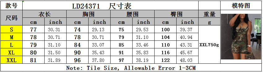 | Tag | shorts , camouflage , bodysuit , buttoned , openwork , Pocketed |