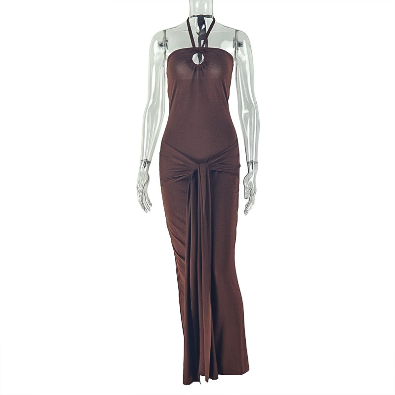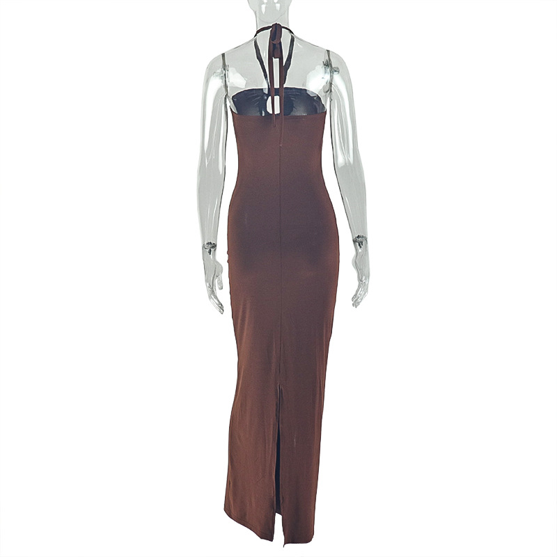 | Product Name | Chest hugging and hip hugging skirt with hanging collar, sleeveless backless, solid color long dress |