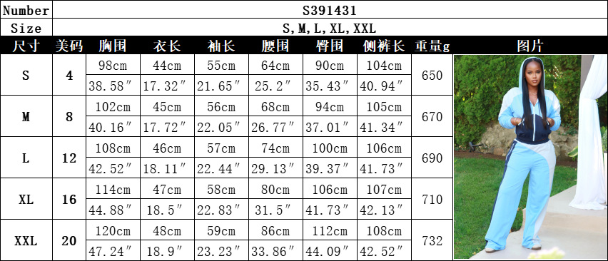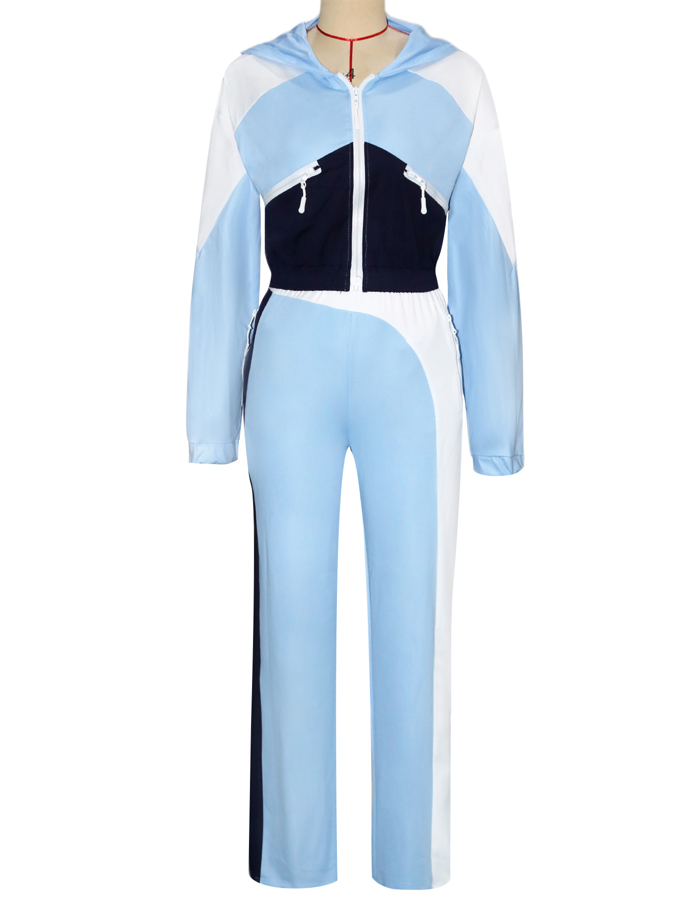 Color blocked zipper cardigan wide leg elastic waist sports pants two-piece set Item NO.: S391431