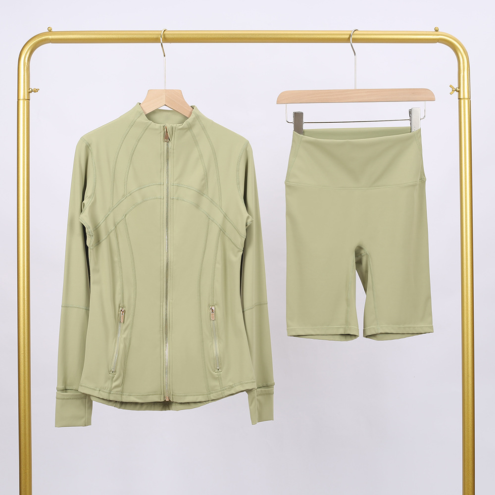 Golden zipper Slim fit elastic jacket, cropped pants, yoga fitness suit Item NO.: LU938774021935G