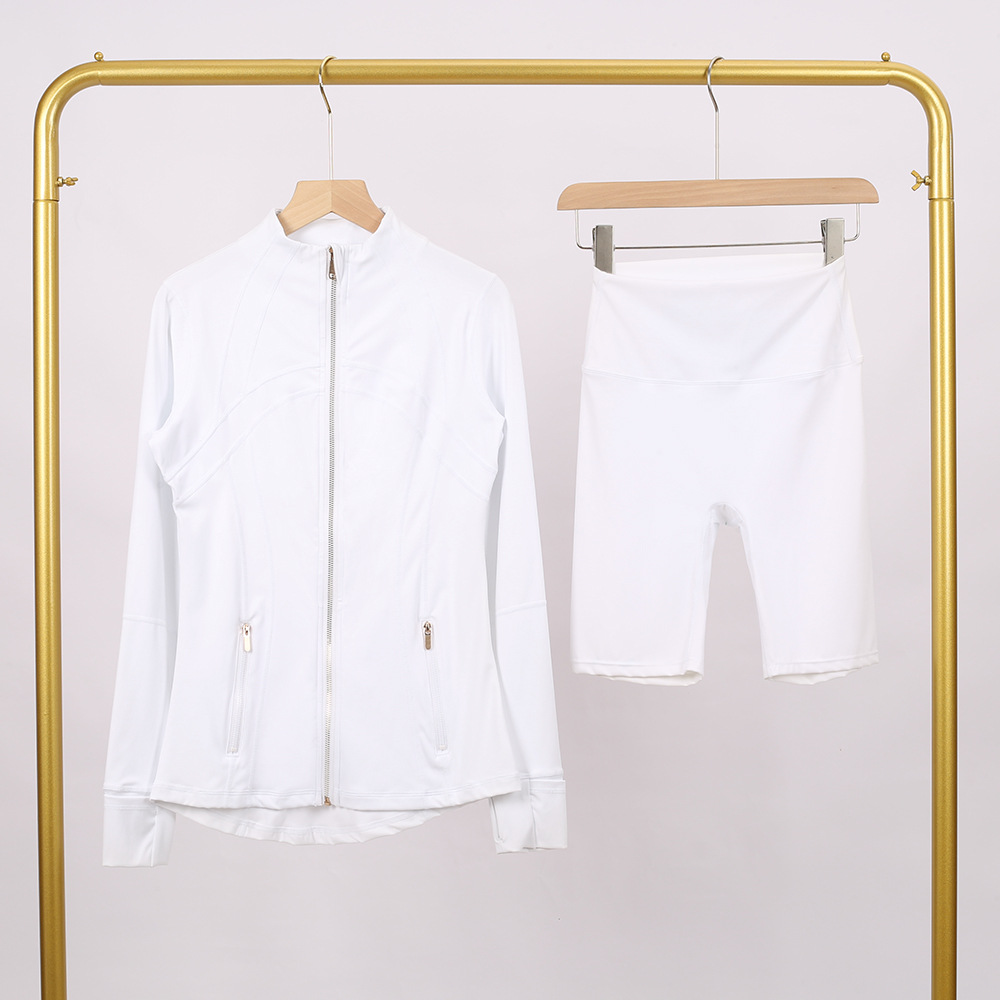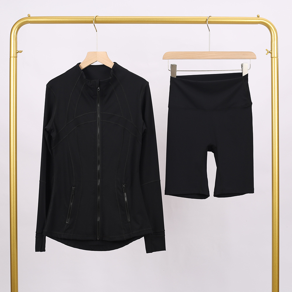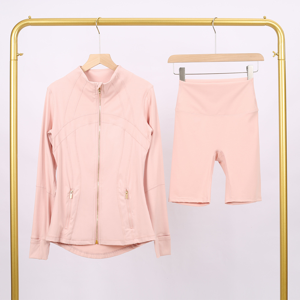 Home>Two Pieces Set>Two Piece Short Set>Golden zipper Slim fit elastic jacket, cropped pants, yoga fitness suit