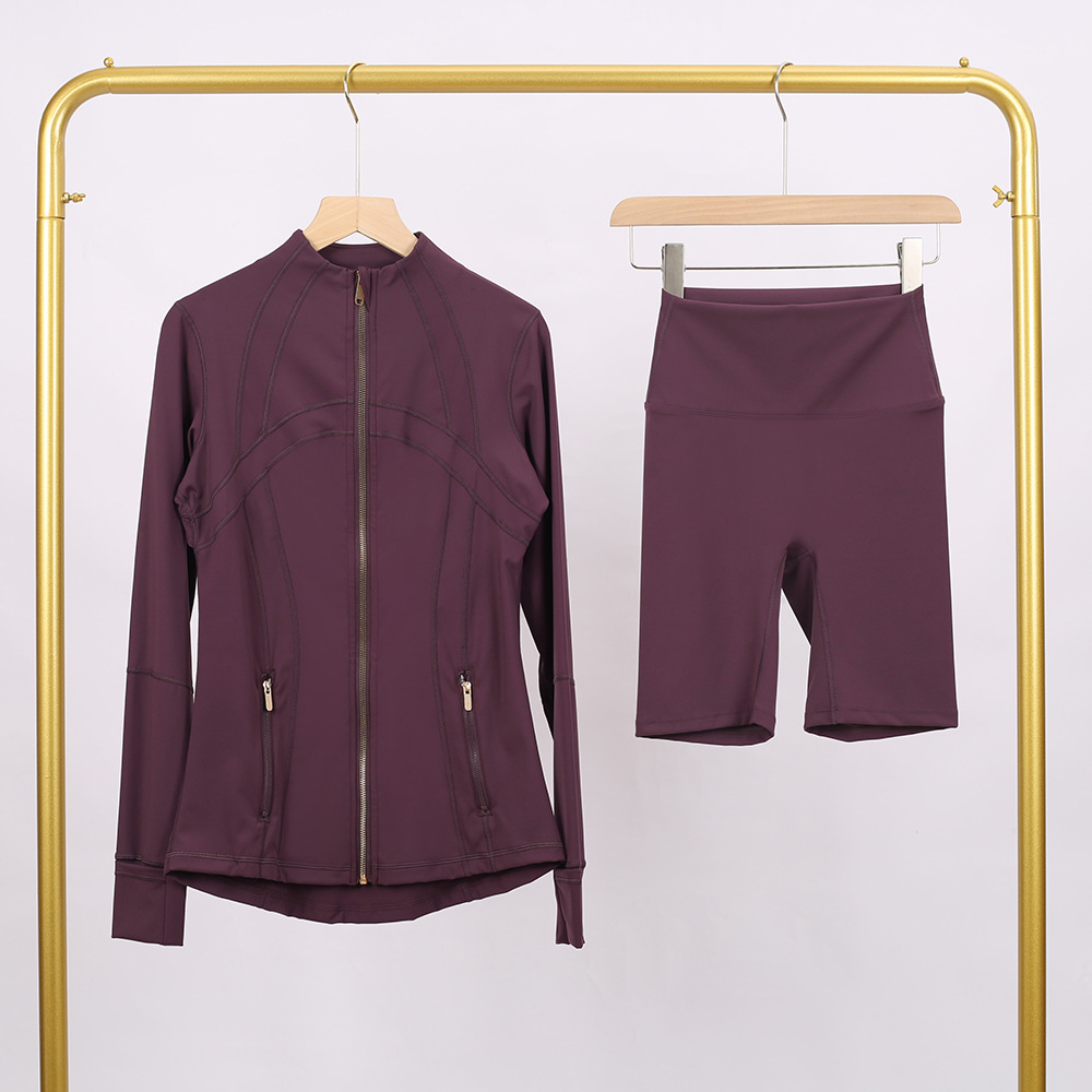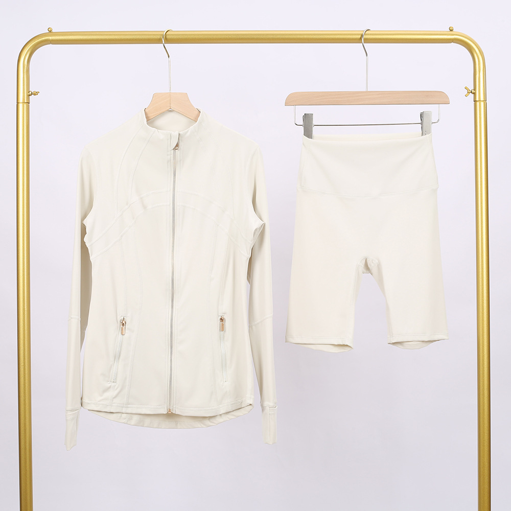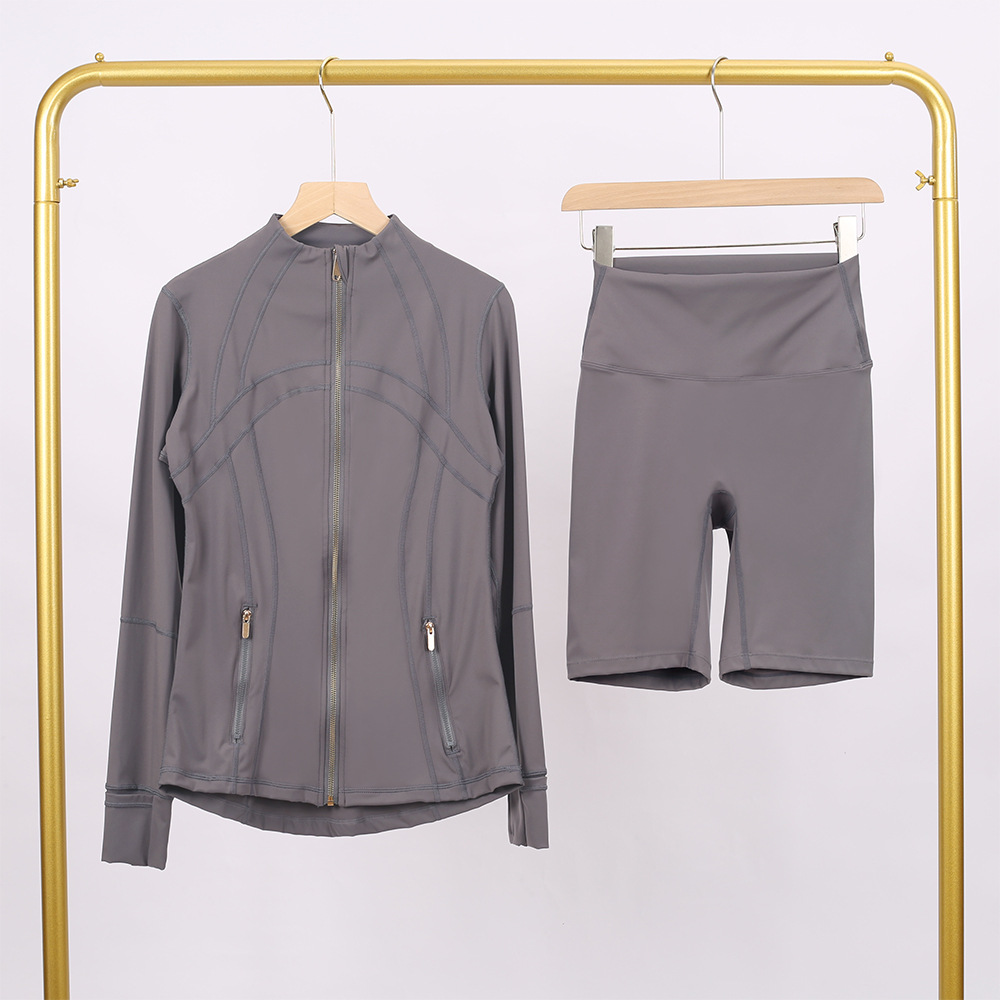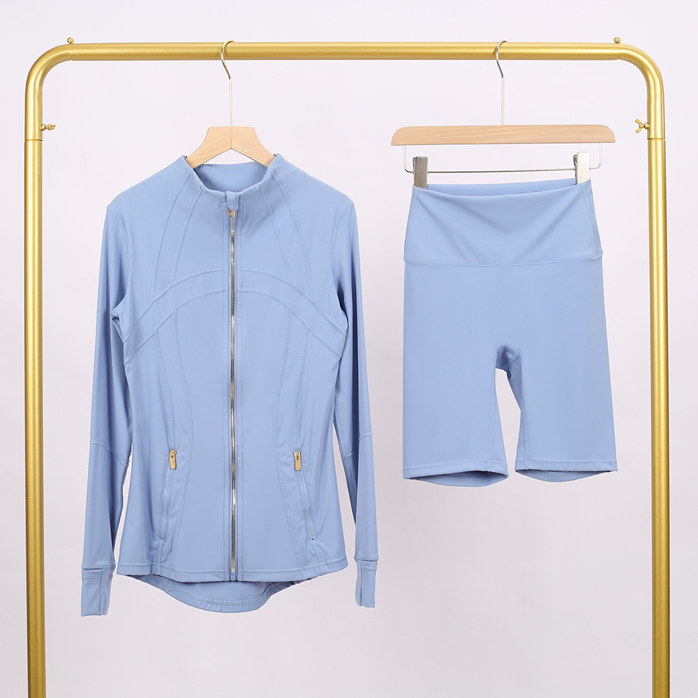 Home>Two Pieces Set>Two Piece Short Set>Golden zipper Slim fit elastic jacket, cropped pants, yoga fitness suit