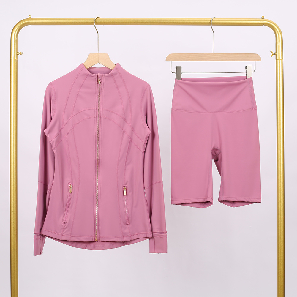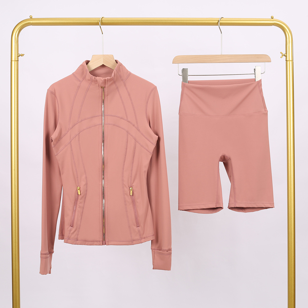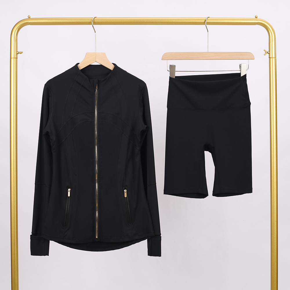 Copy| Product Name | Golden zipper Slim fit elastic jacket, cropped pants, yoga fitness suit |