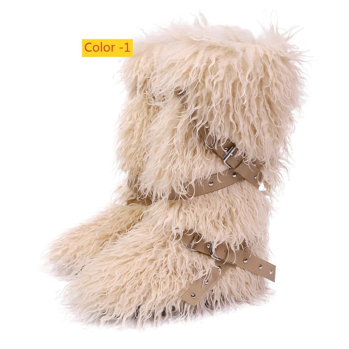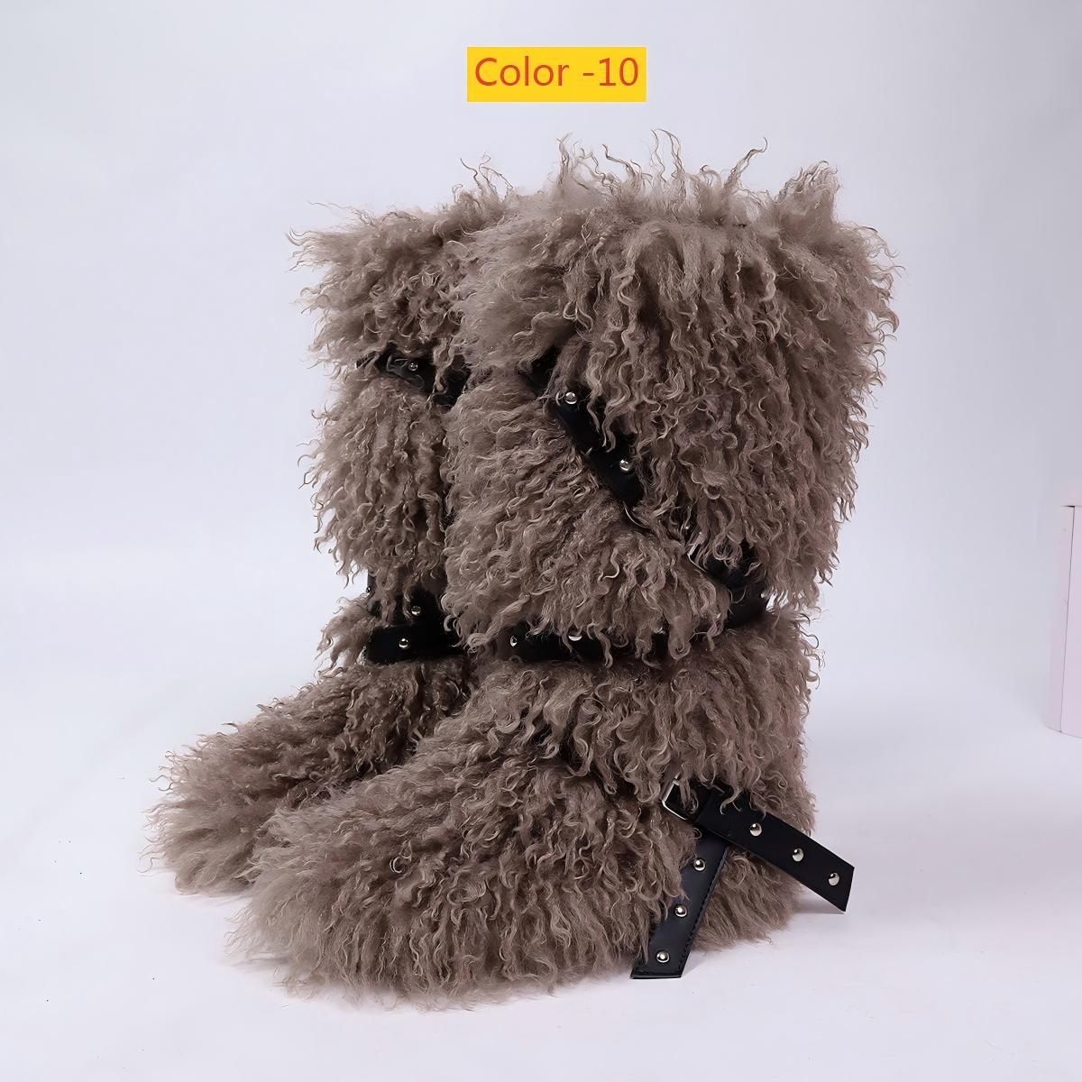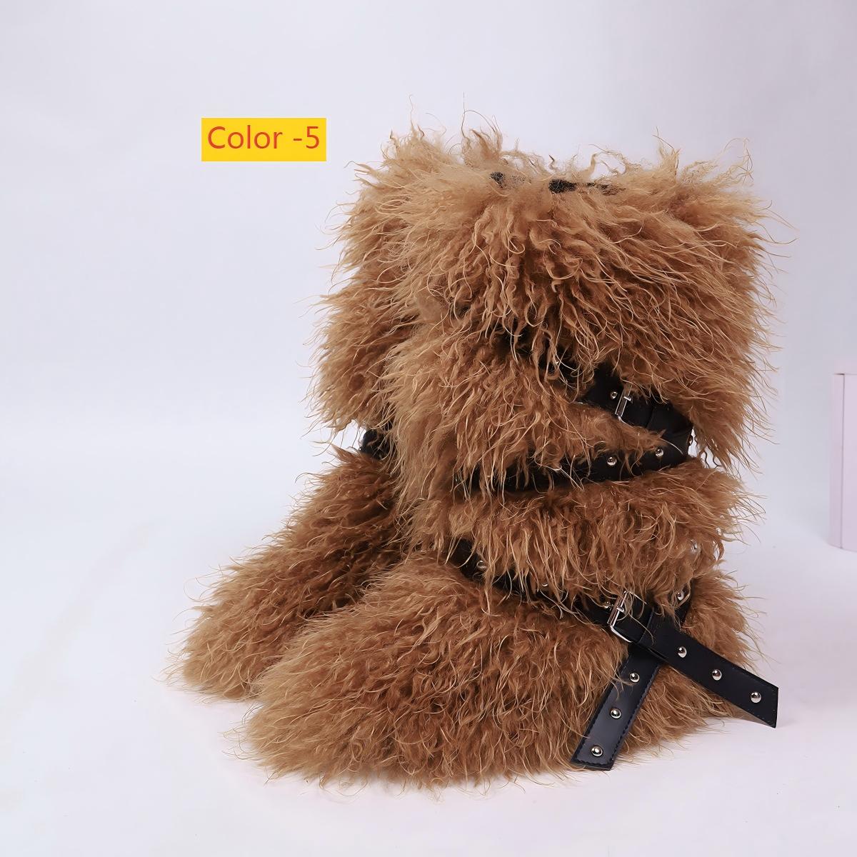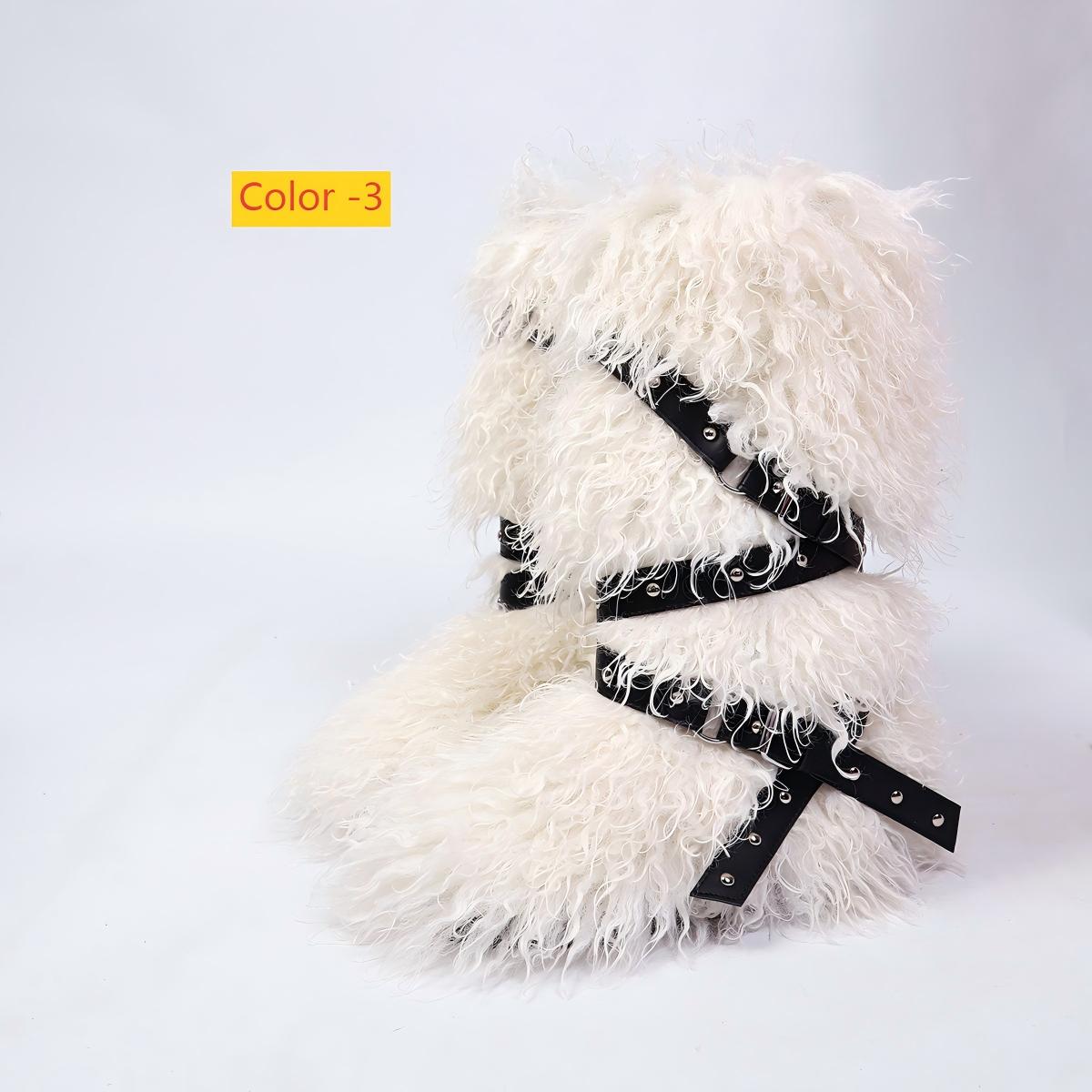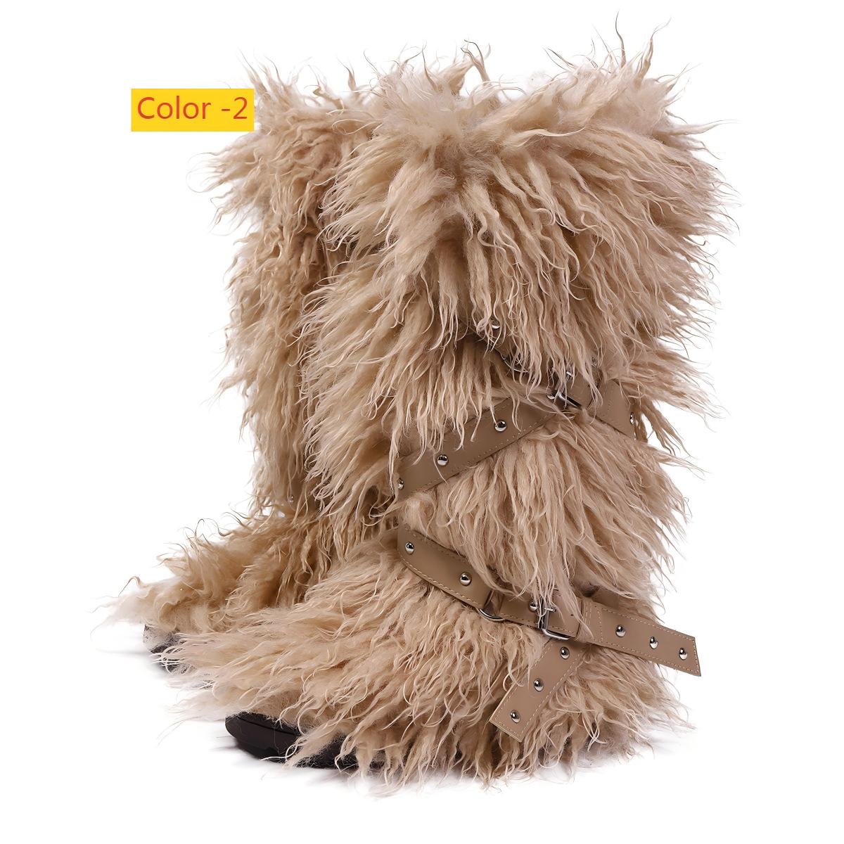 High end tied hairy boots with velvet rivets, fur snow boots