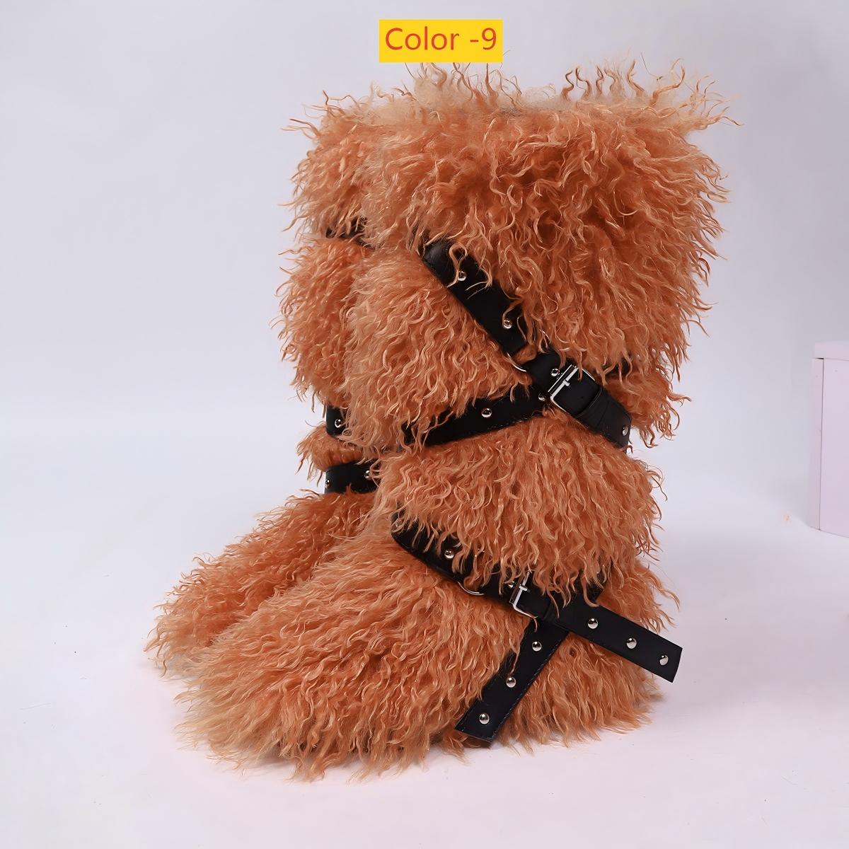 High end tied hairy boots with velvet rivets, fur snow boots Item NO.: F968312056713-2