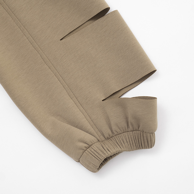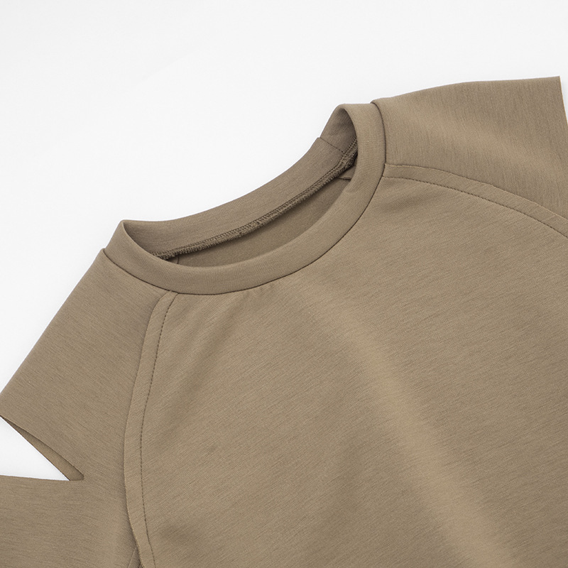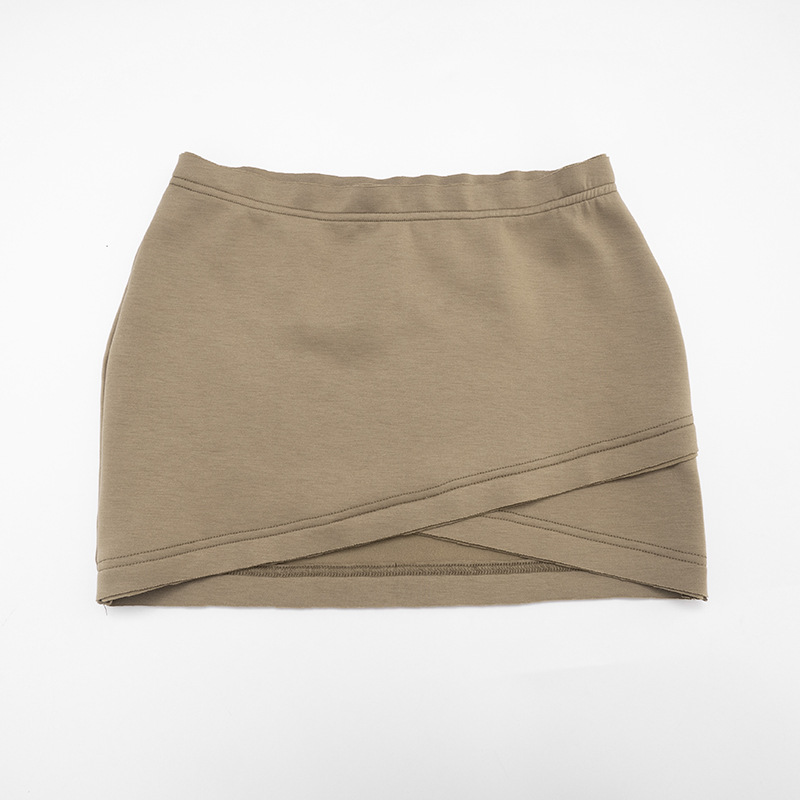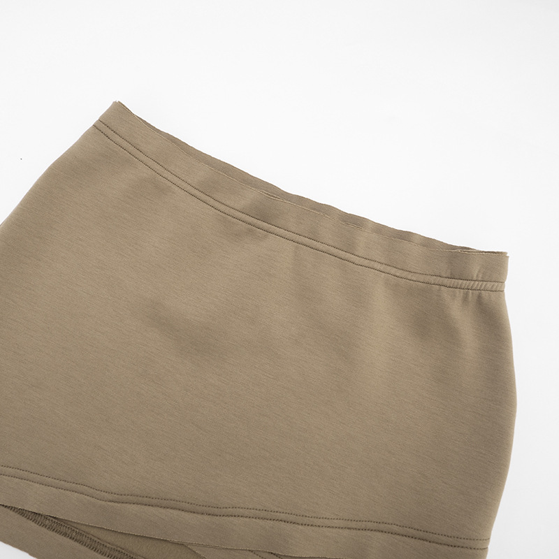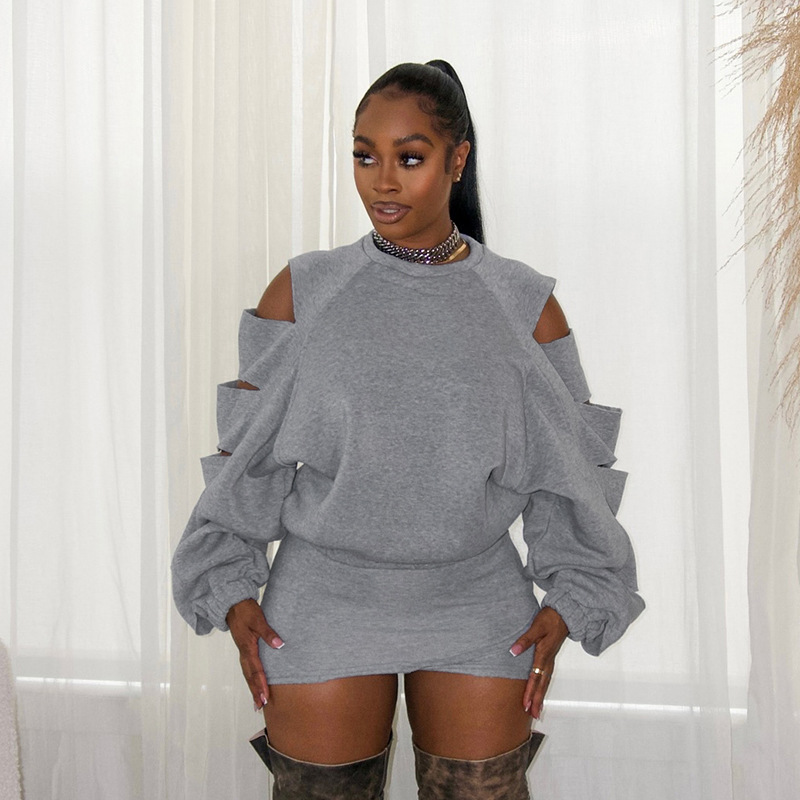 Copy| Product Name | Hooded round neck cut sleeves hollowed out hoodie cross wrap hip skirt set |