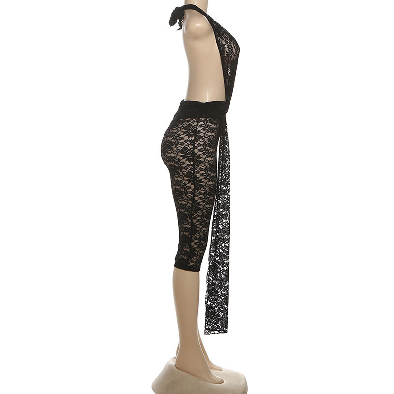 | Product Name | Lace neck hanging, backless, ribbon high waisted jumpsuit |