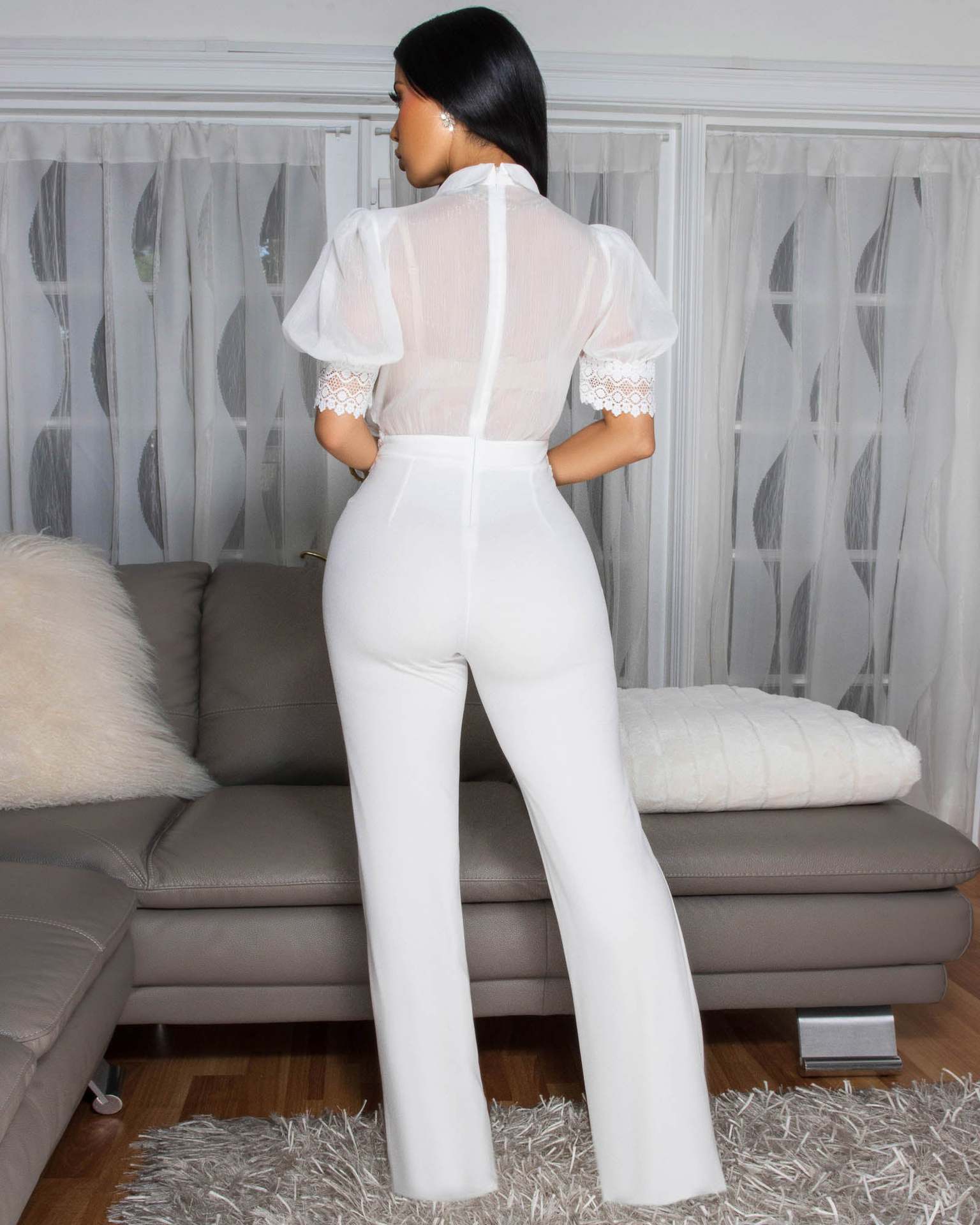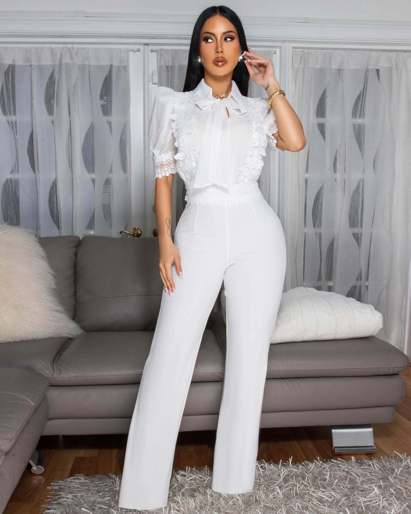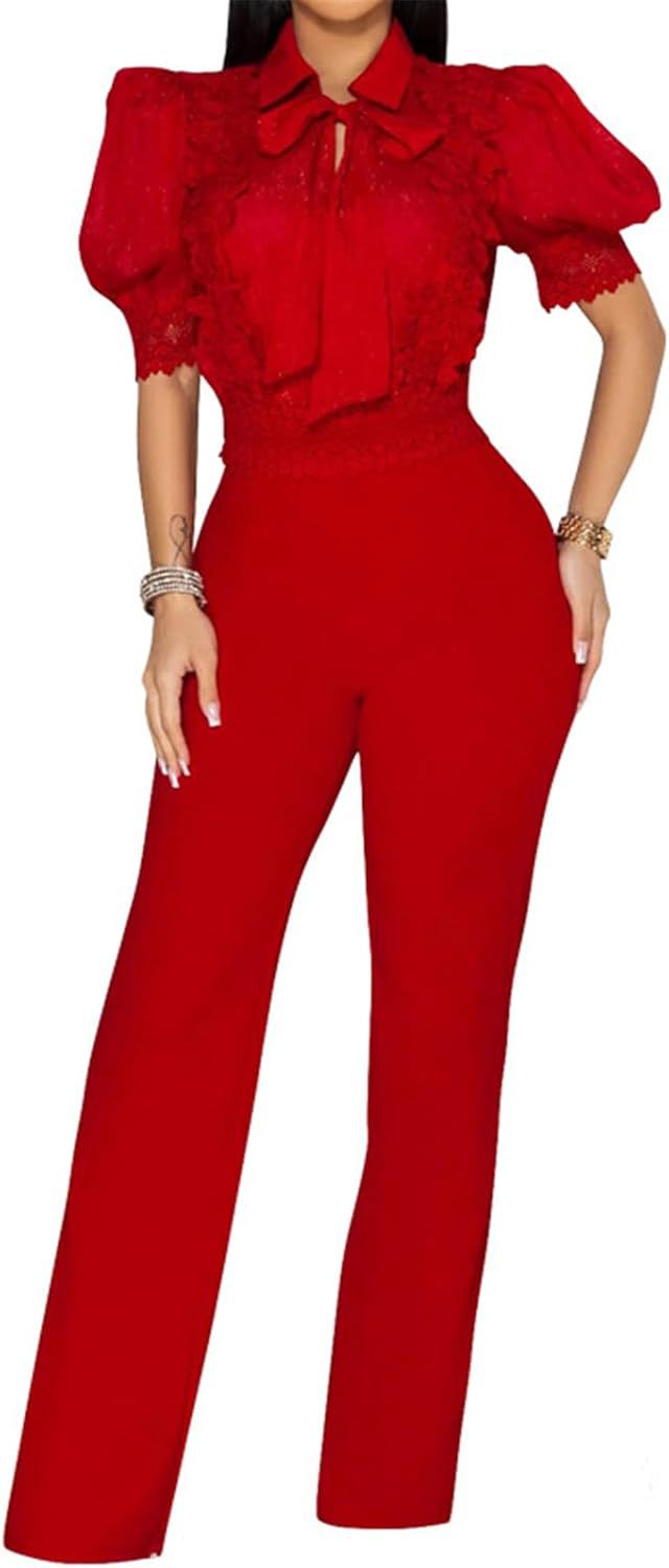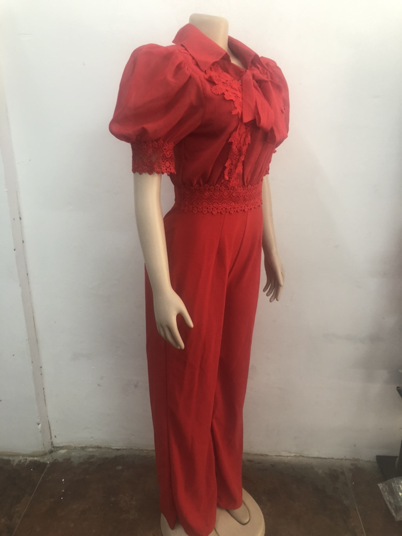 | Tag | Lace patchwork lace up wide leg jumpsuit |