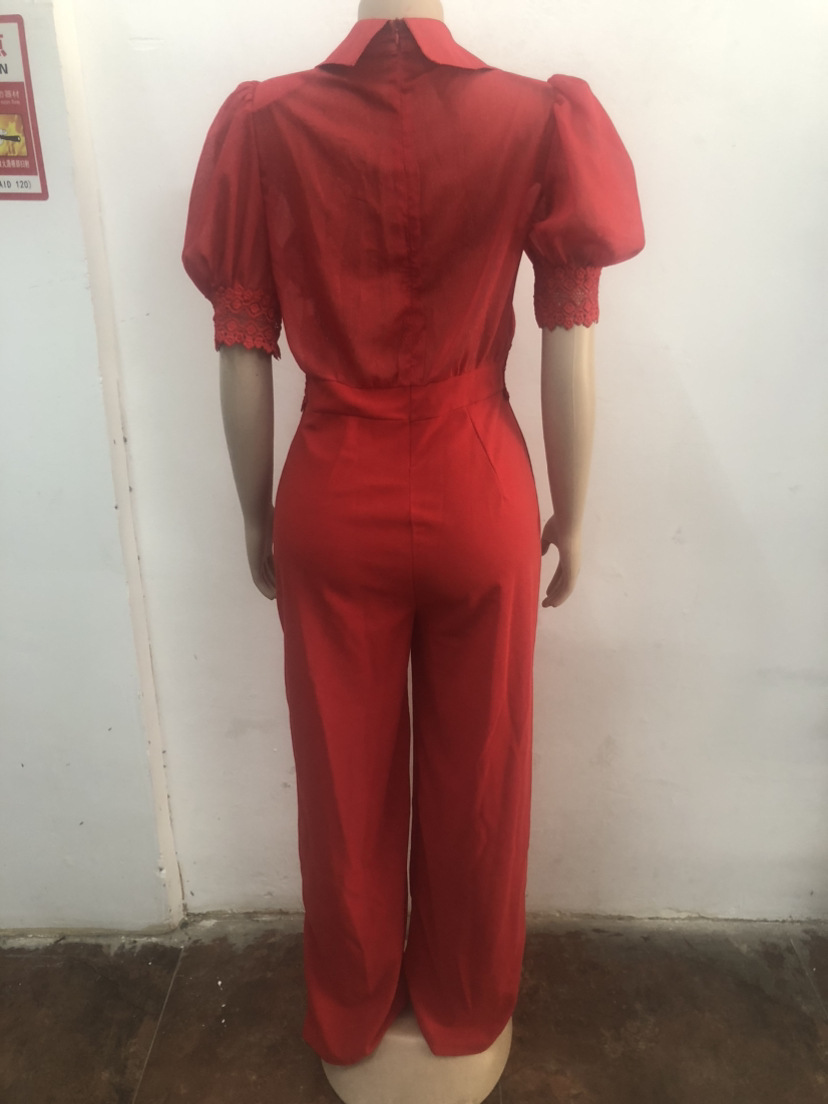 Lace patchwork lace up wide leg jumpsuit Item NO.: AJ4934