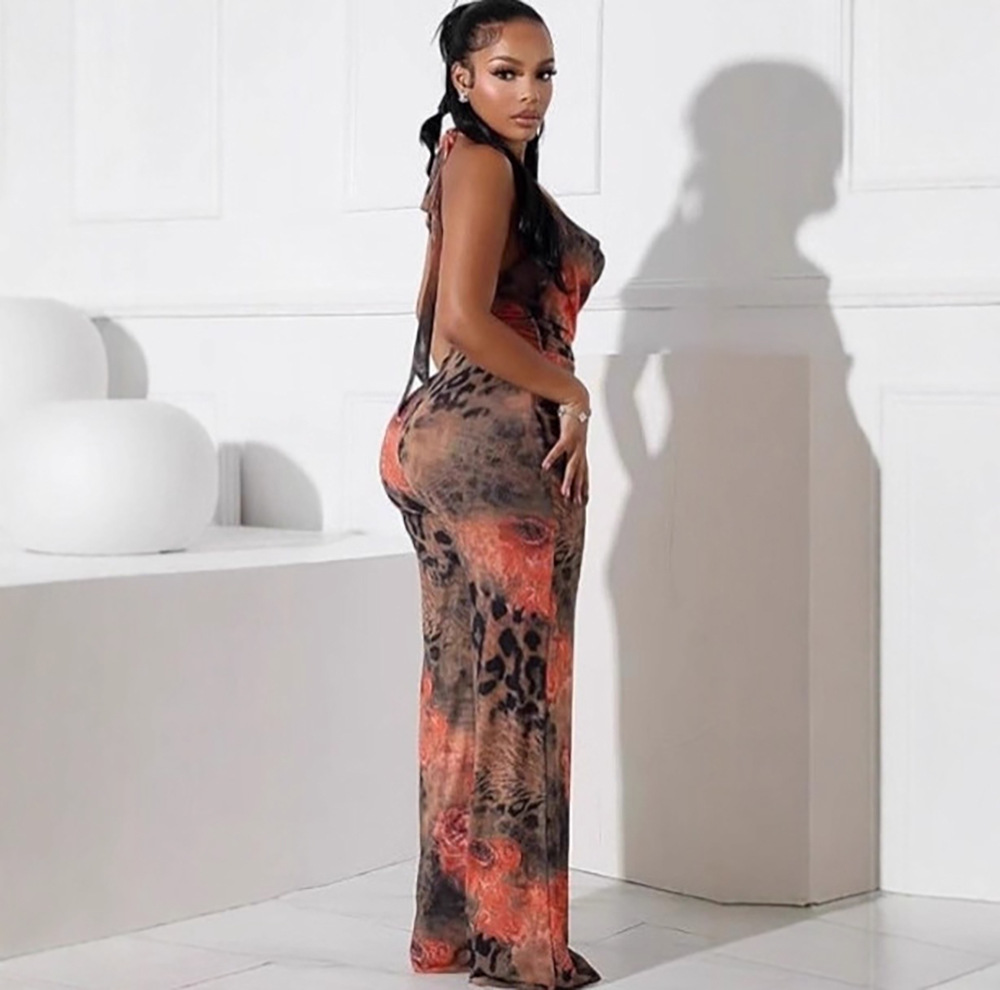 | Product Name | Leopard print flower positioning print neck jumpsuit |