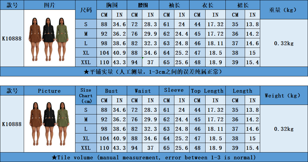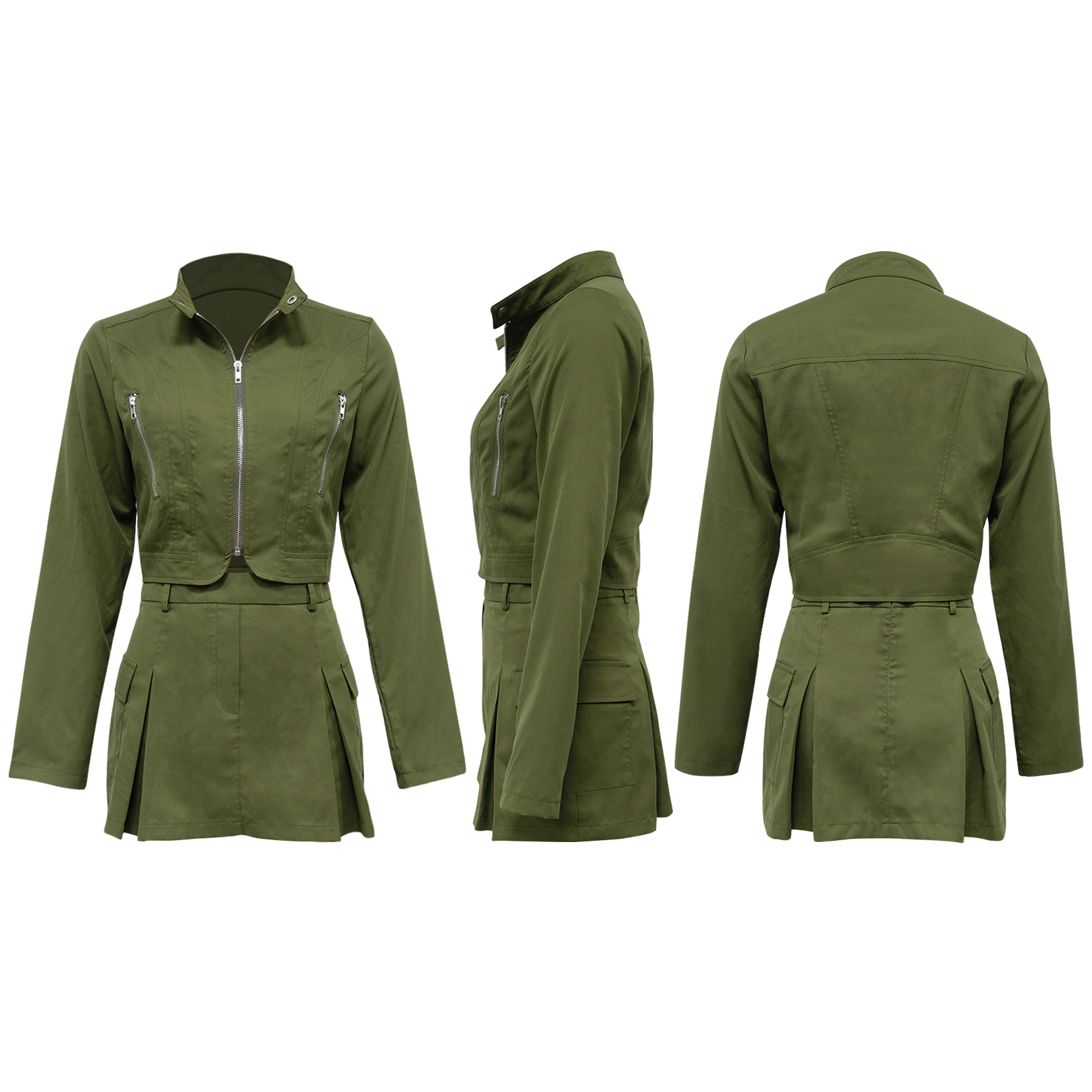 Copy| Product Name | Long sleeved zipper top and short skirt two-piece set |