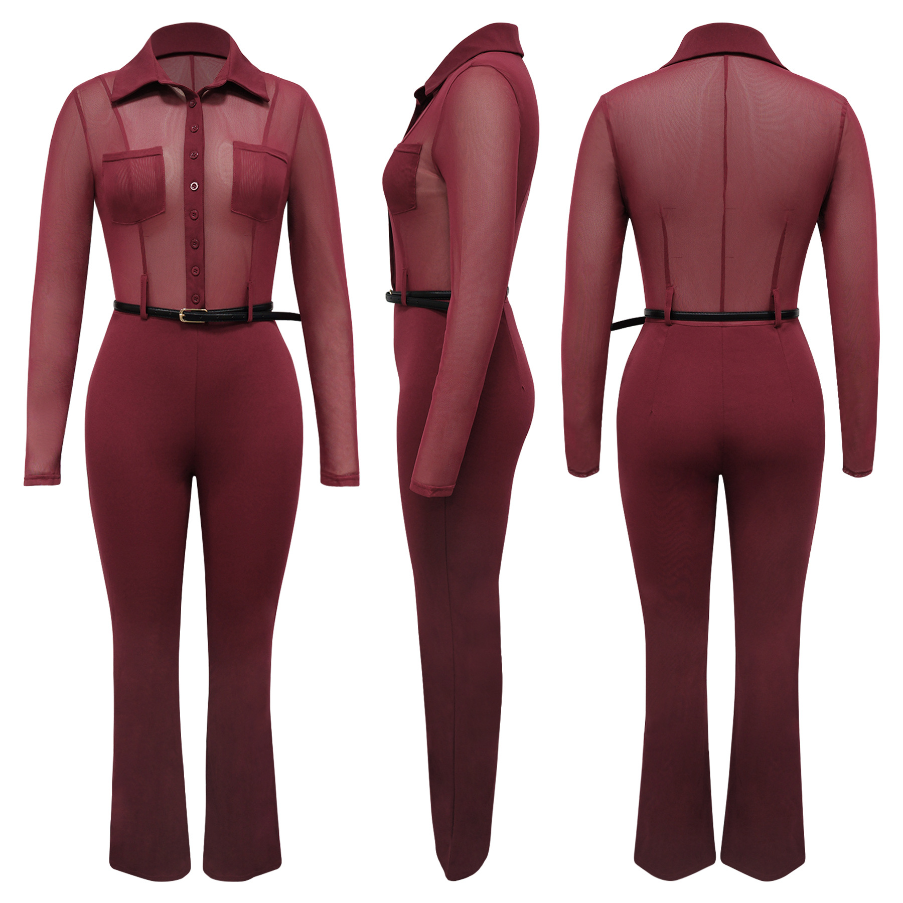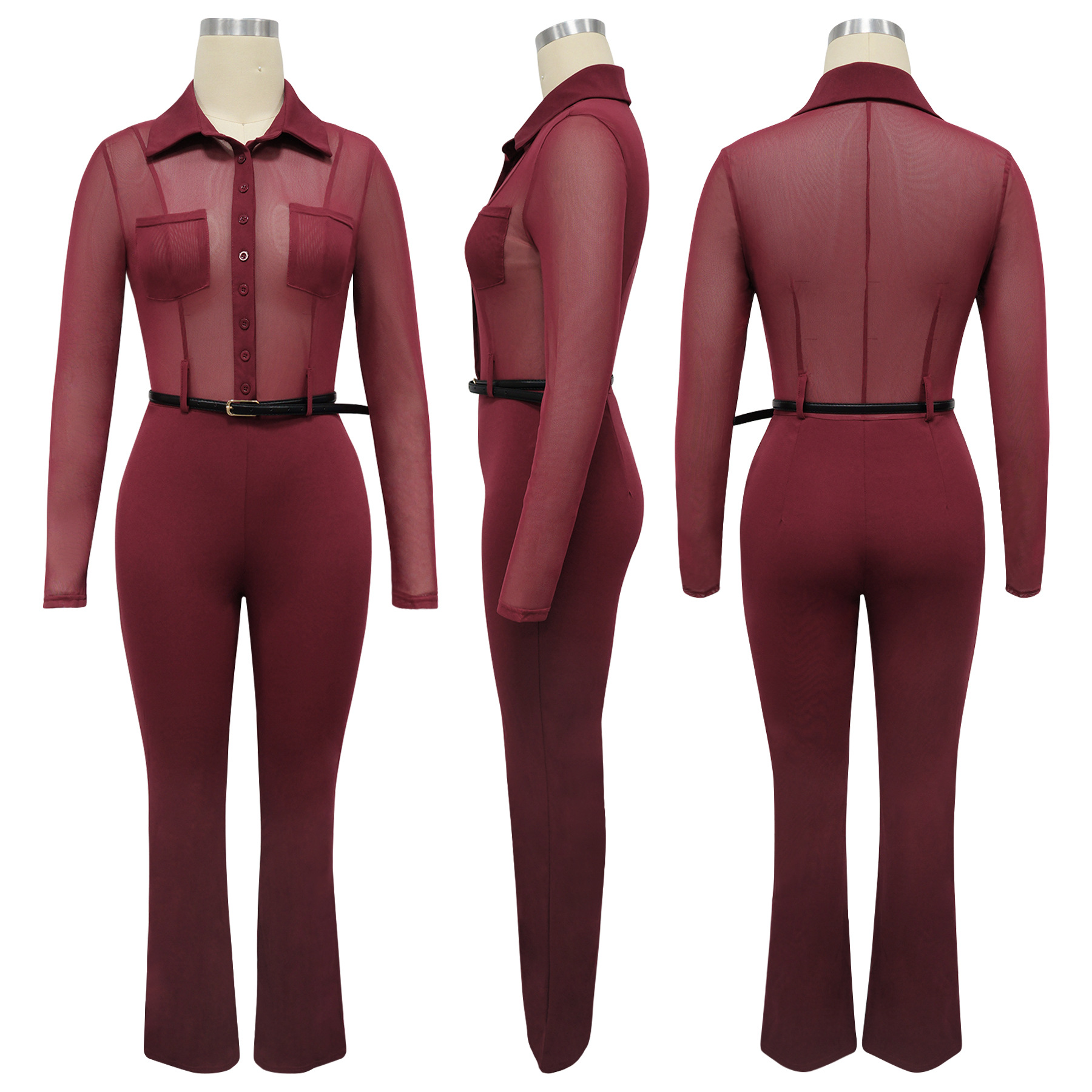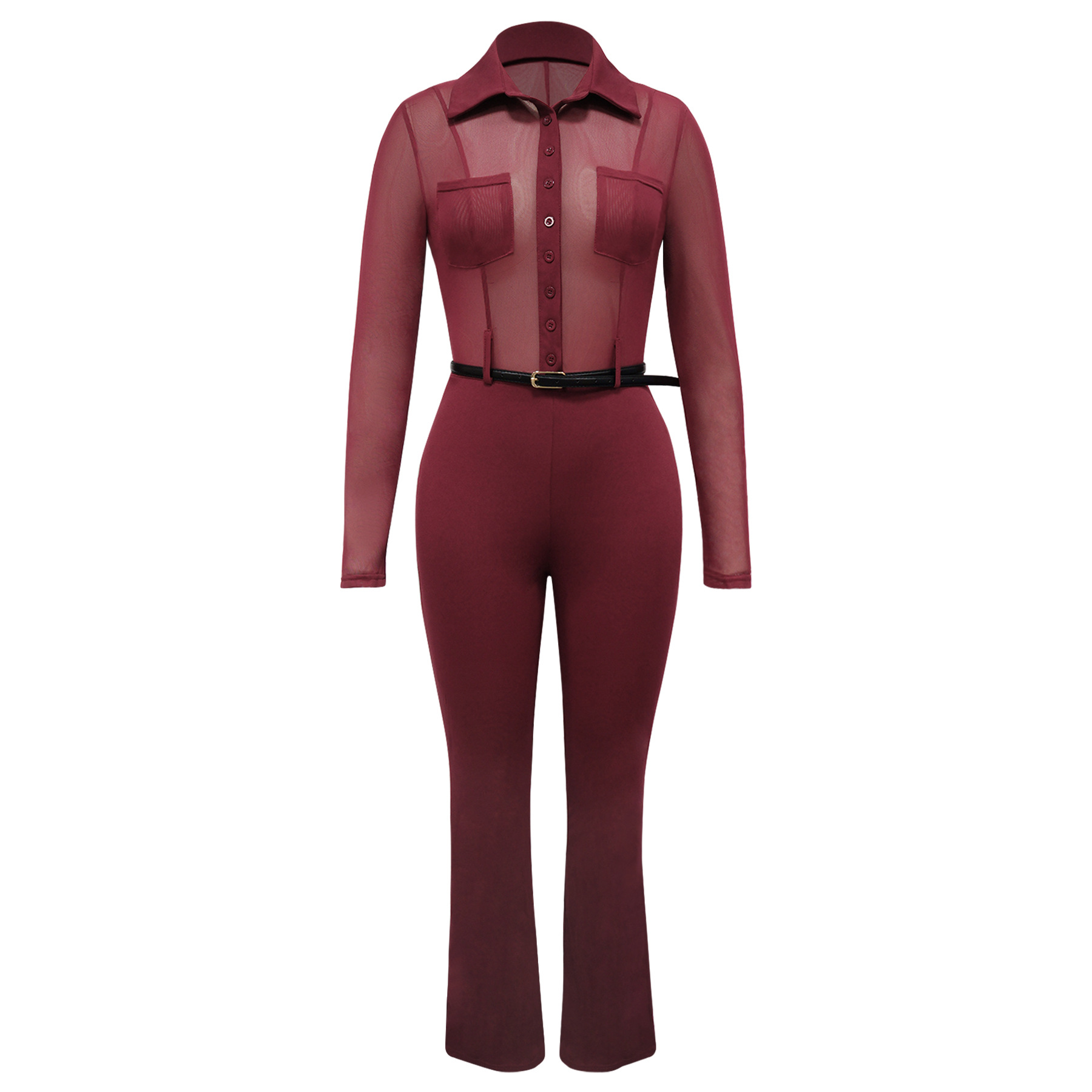 Copy| Product Name | Perspective long sleeved tight fitting jumpsuit |