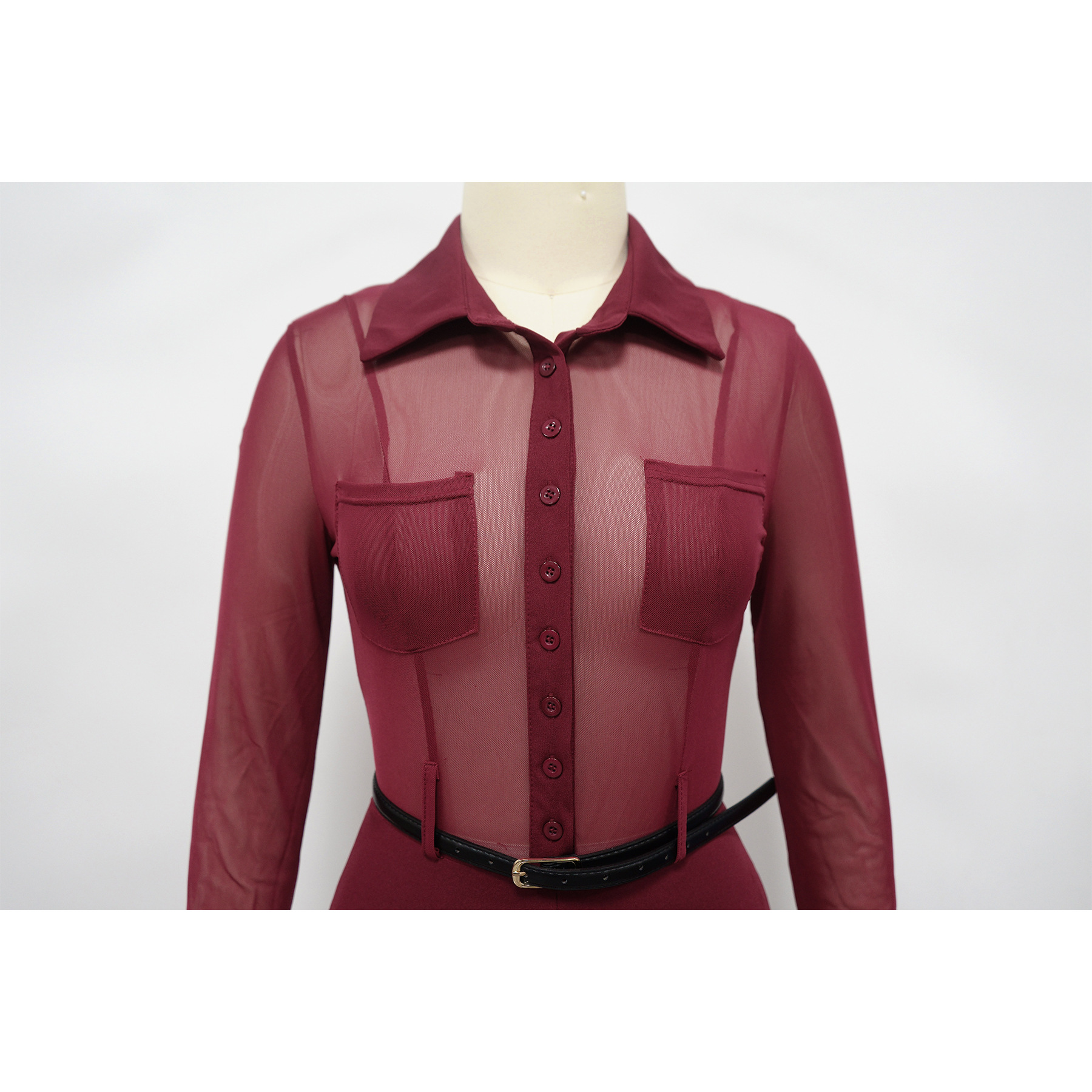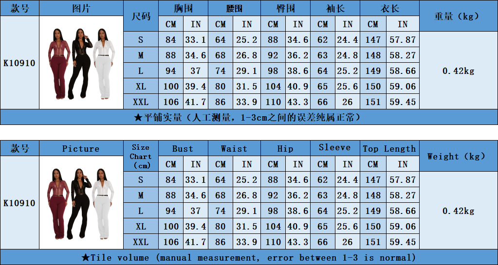 Perspective long sleeved tight fitting jumpsuit Item NO.: K10910