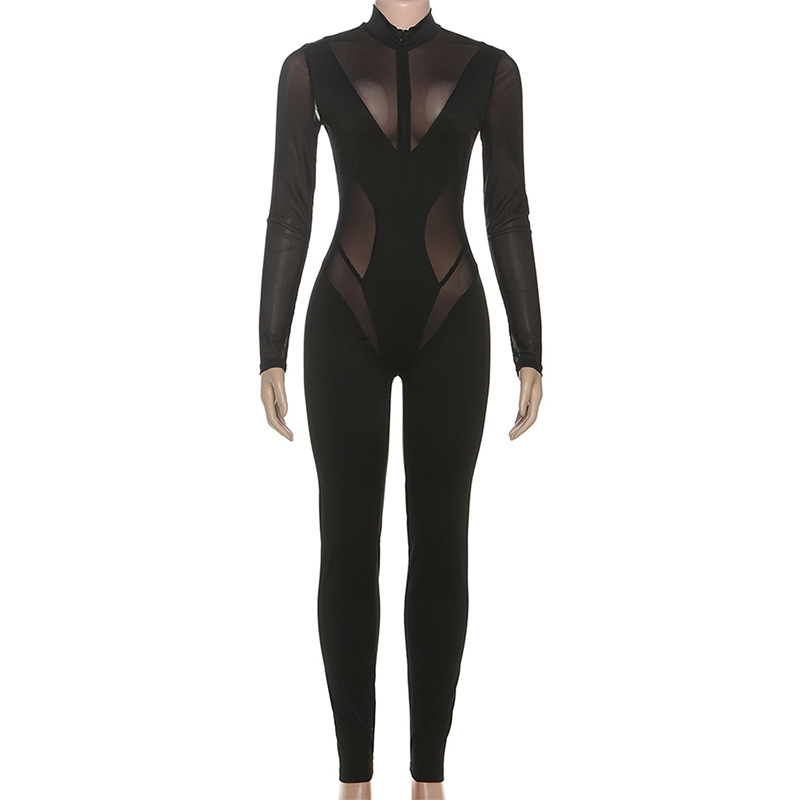 | Tag | mesh , solid , color , jumpsuit , long , tight , zipper , perspective , sleeved |