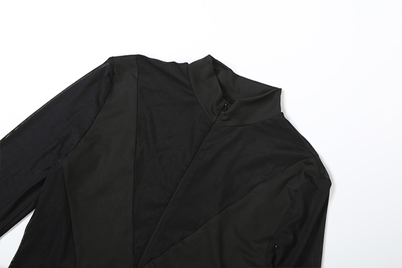 | Product Name | Perspective mesh zipper solid color long sleeved tight jumpsuit |