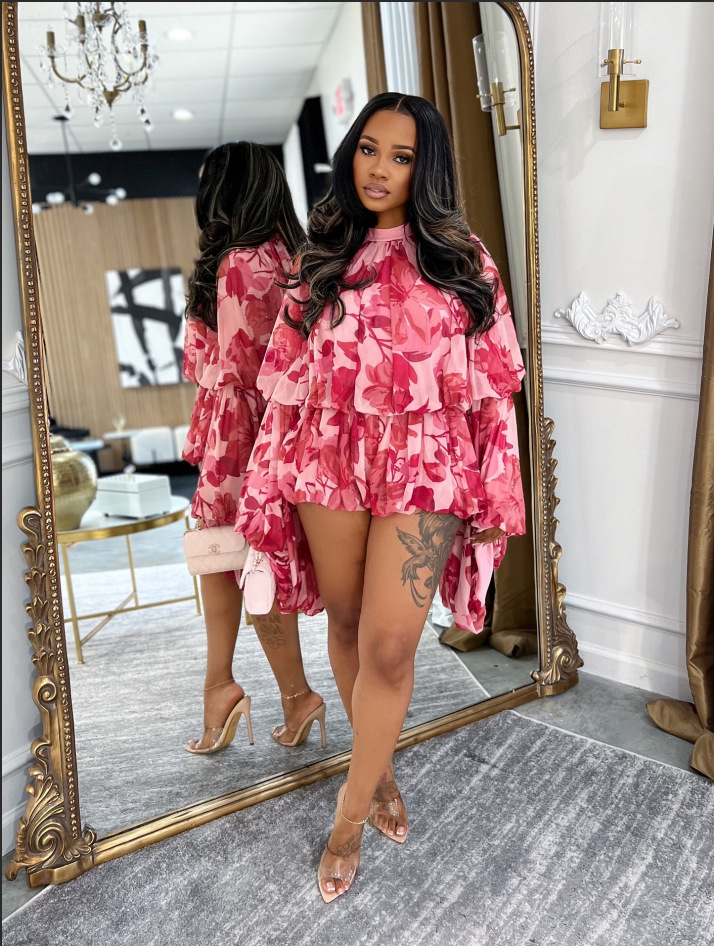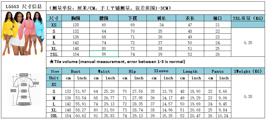 Printed round neck lantern sleeve top with ruffle edge shorts two-piece set L5553 Item NO.: L5553