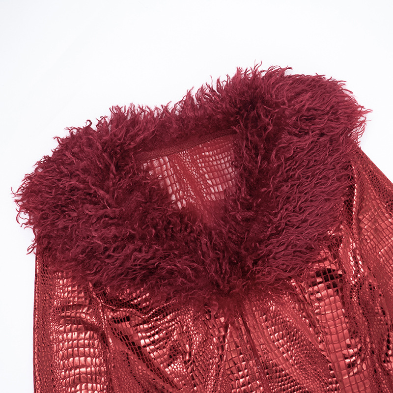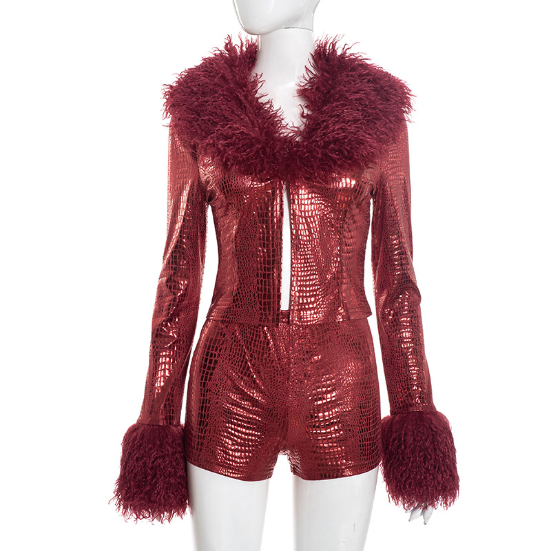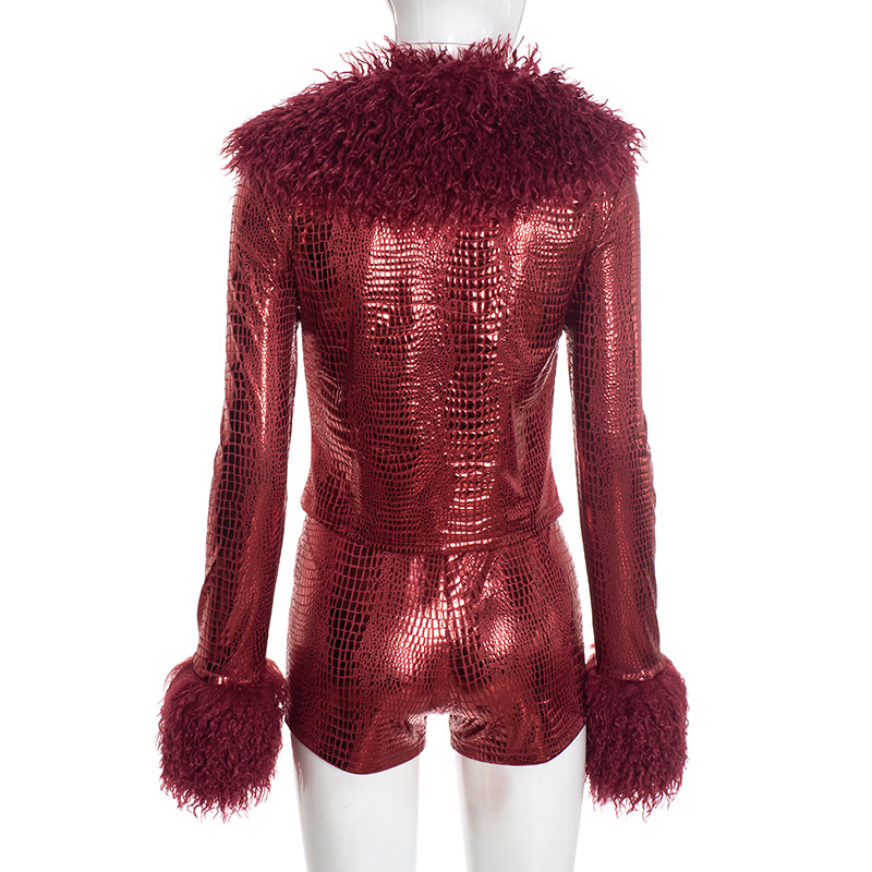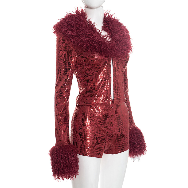 | Product Name | Python pattern hot stamping fur long sleeved top, tight shorts two-piece set |