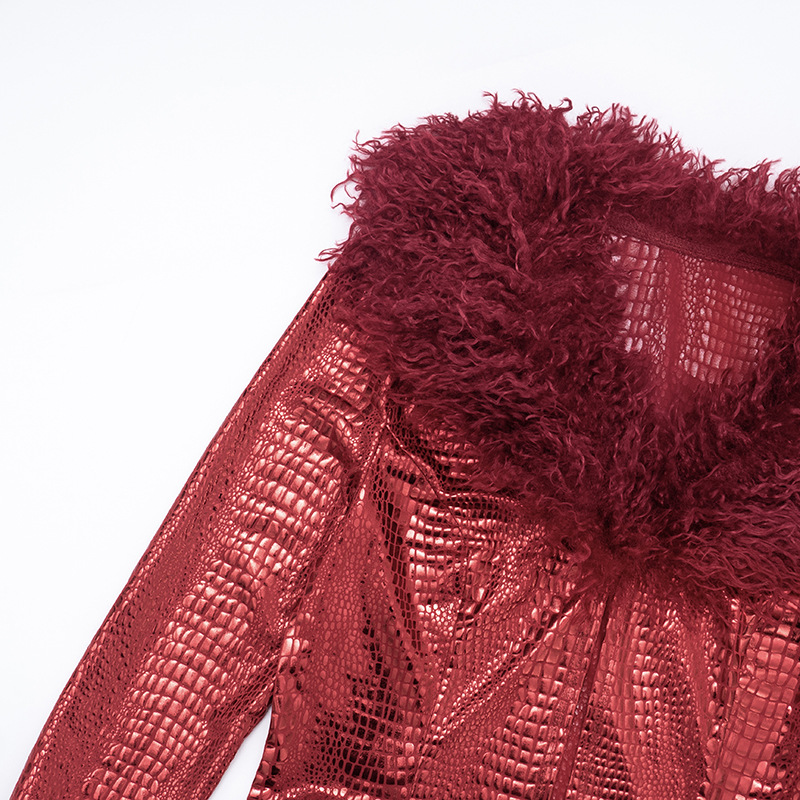 Python pattern hot stamping fur long sleeved top, tight shorts two-piece set