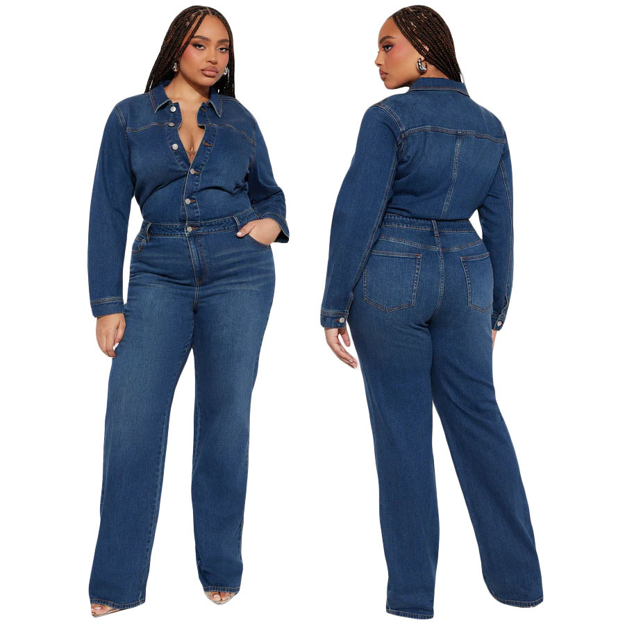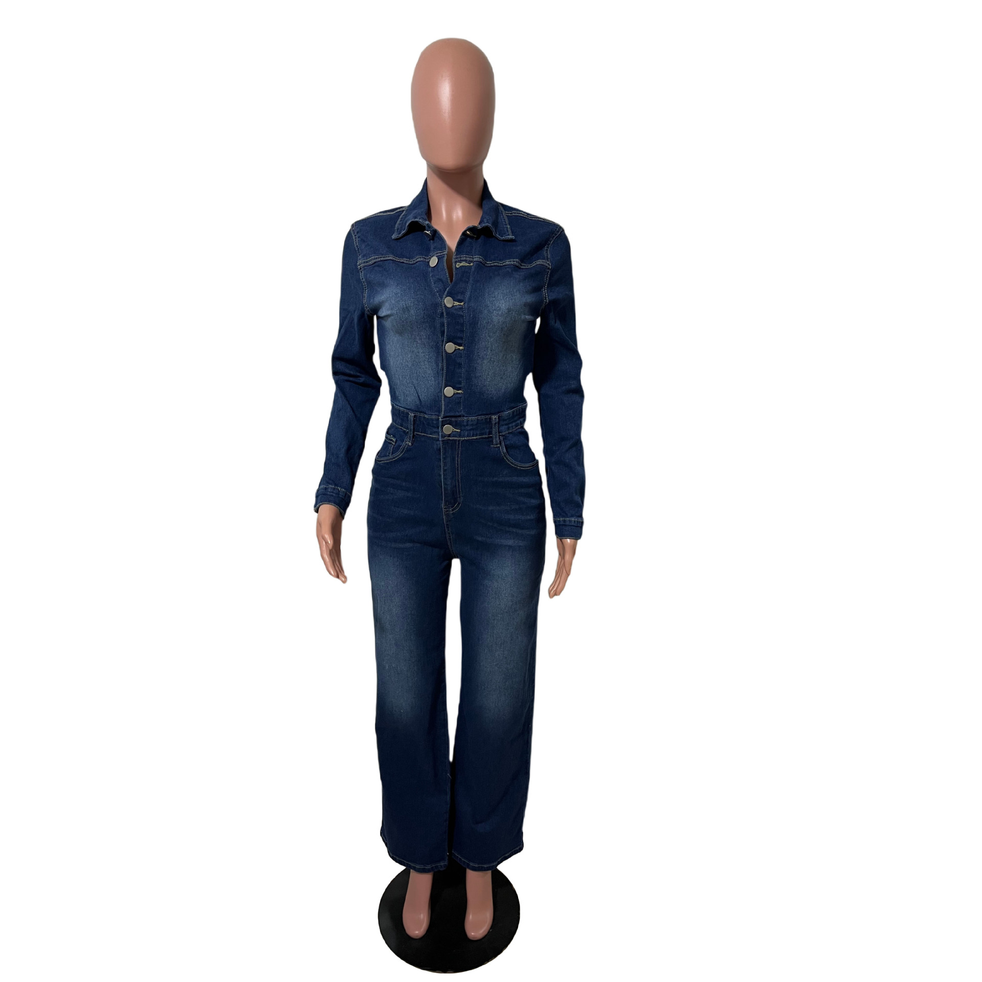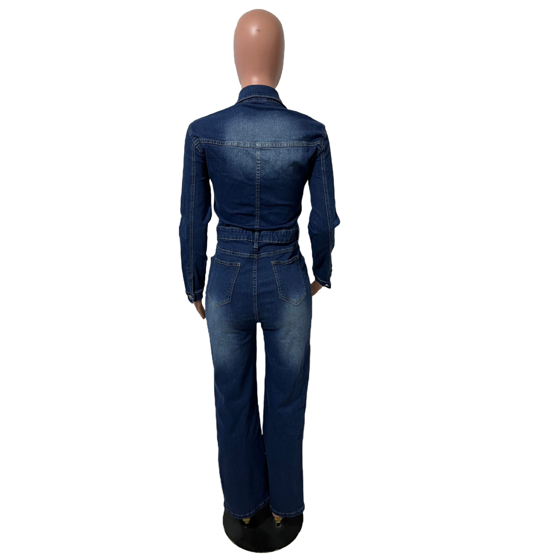 | Product Name | Slim fit elastic bell mouth wash long sleeved denim jumpsuit |