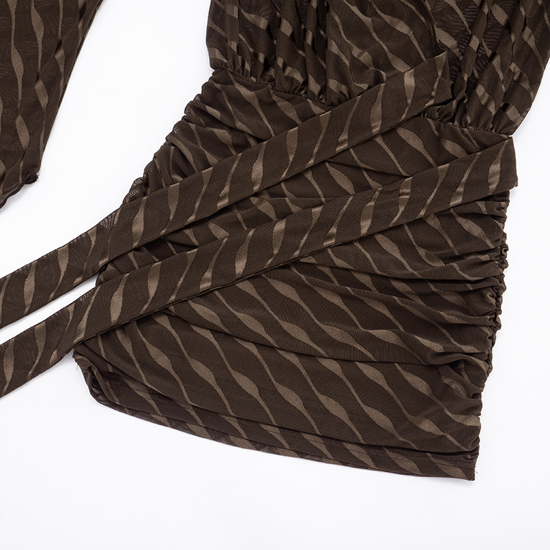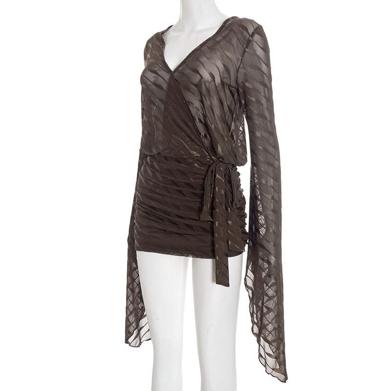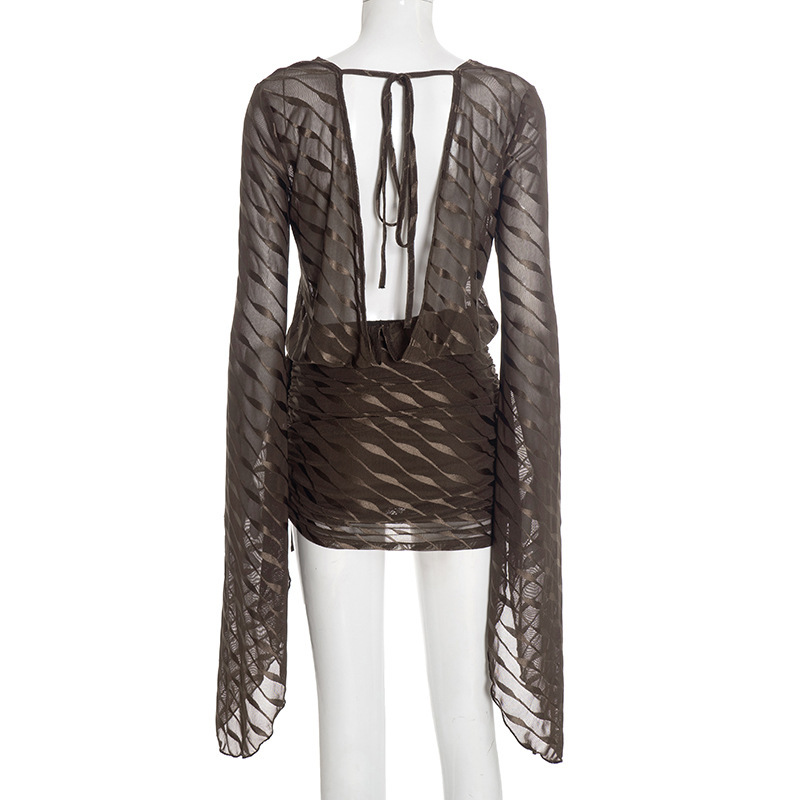 | Product Name | Wave Pattern V-Neck Flared Sleeve Exposed Backpack Hip Dress |