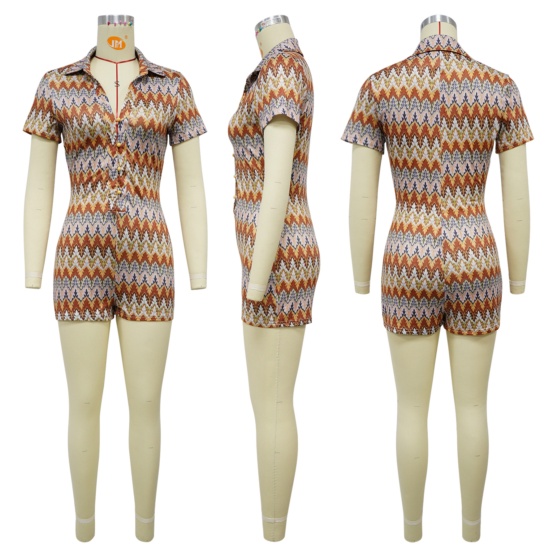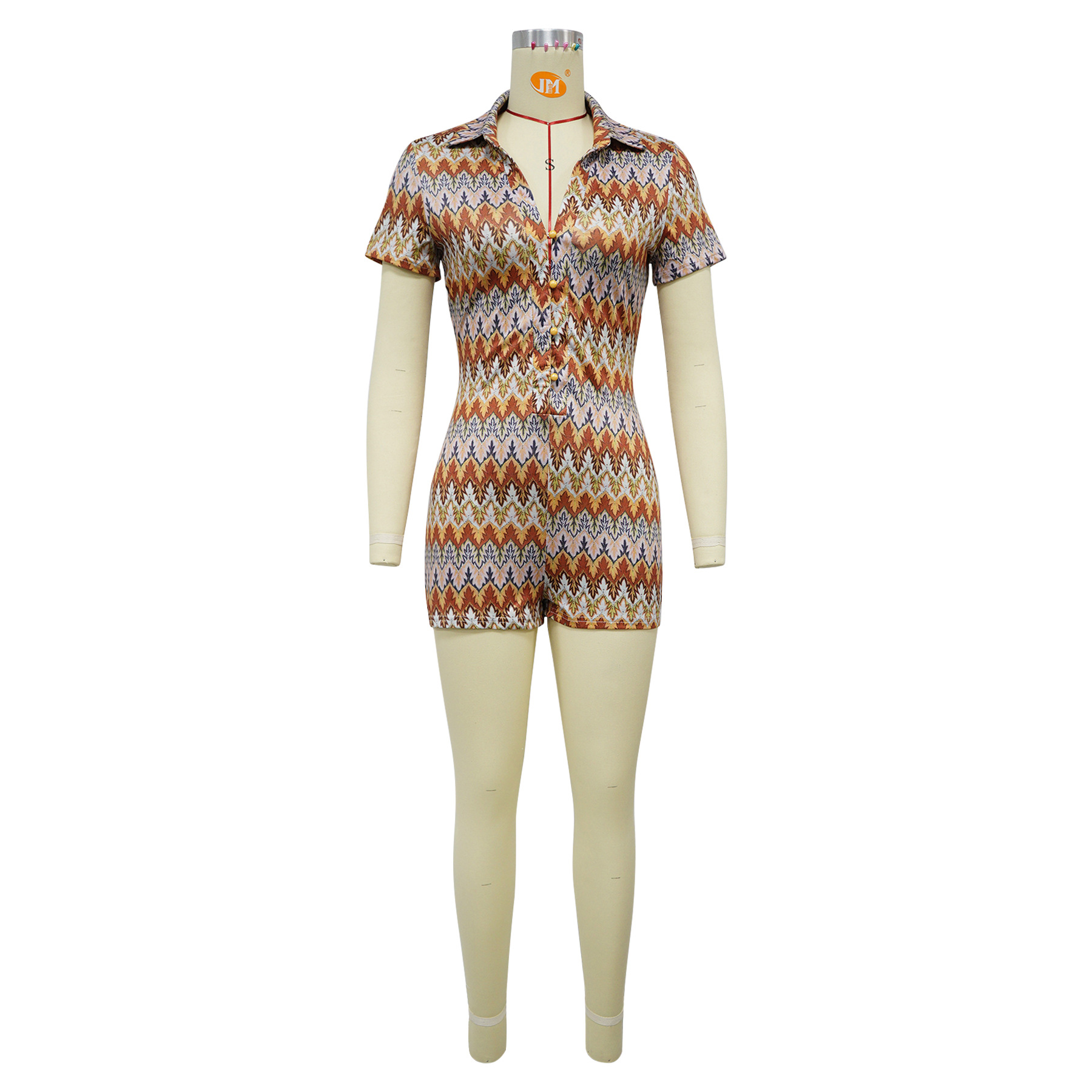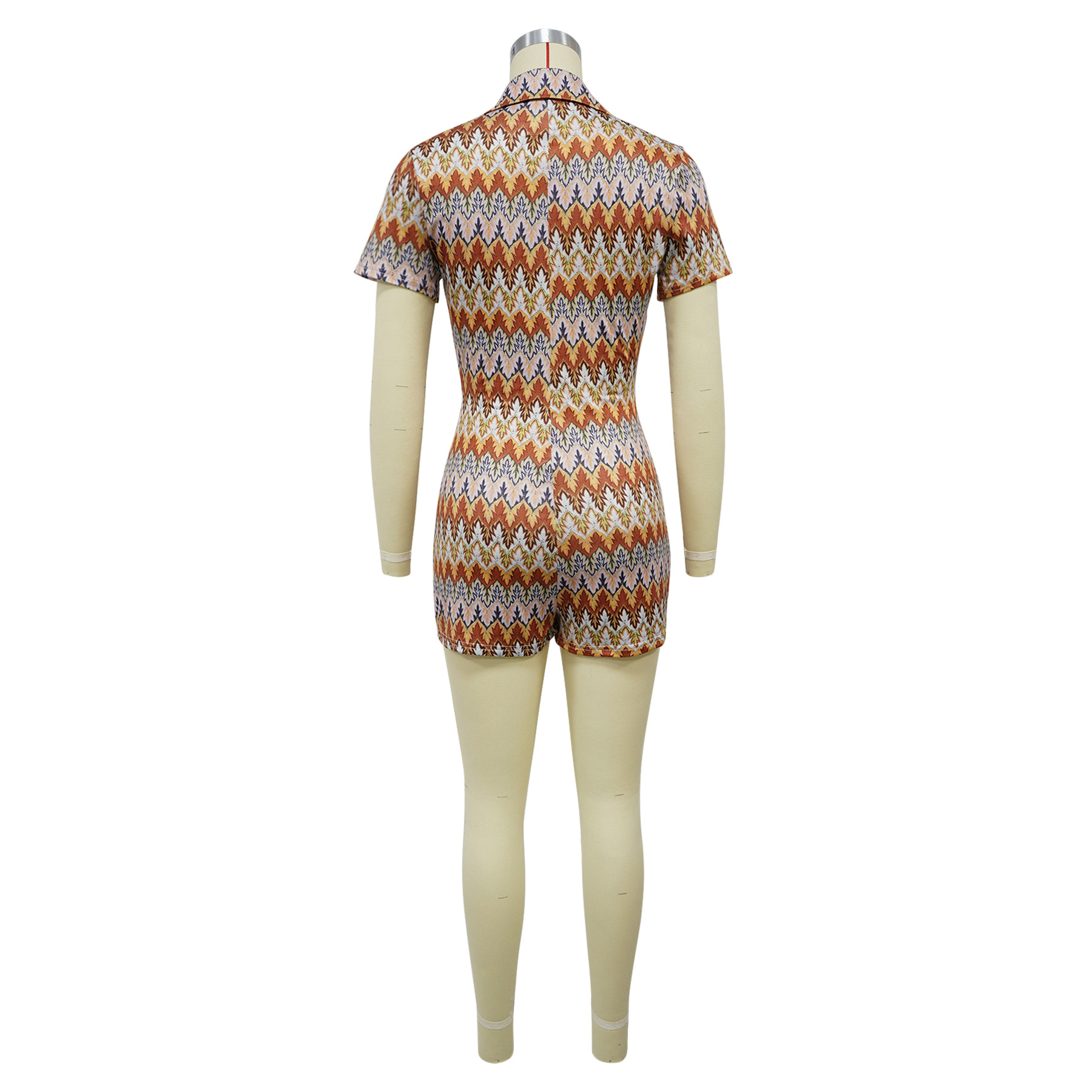 | Product Name | Wave patterned color stripe V-neck short sleeved jumpsuit shorts |
