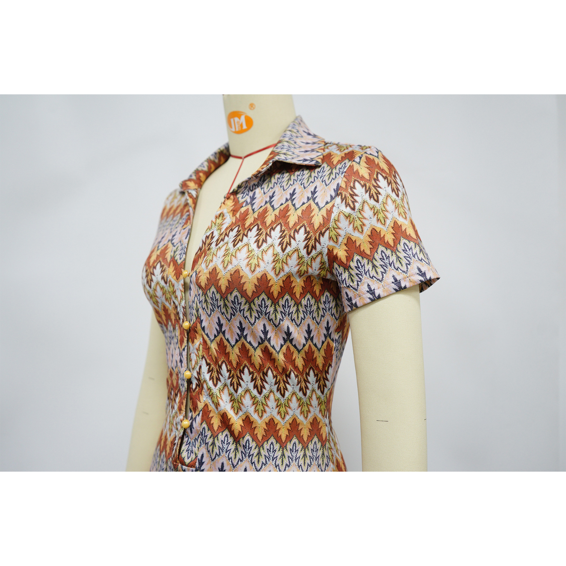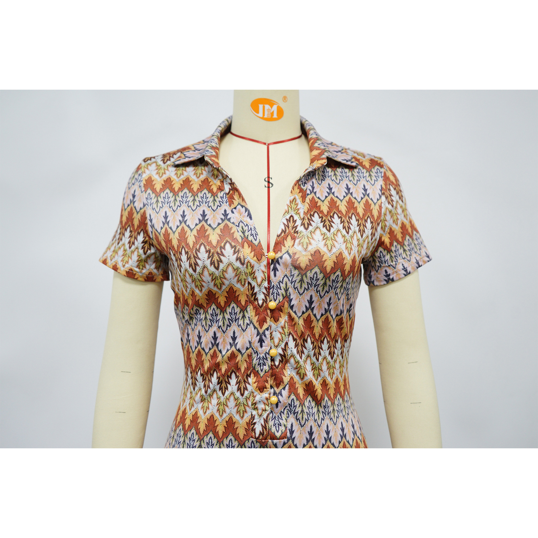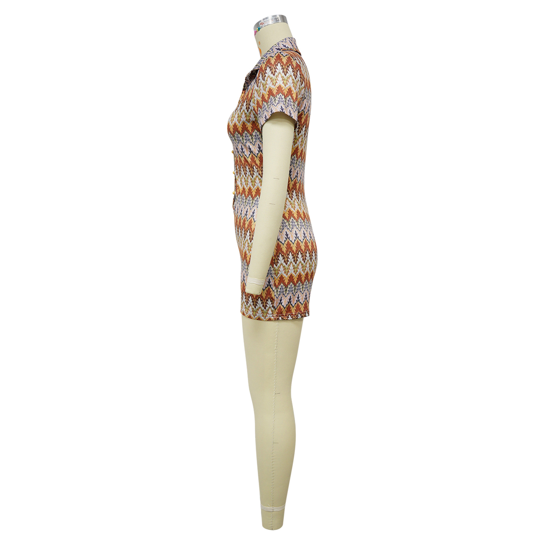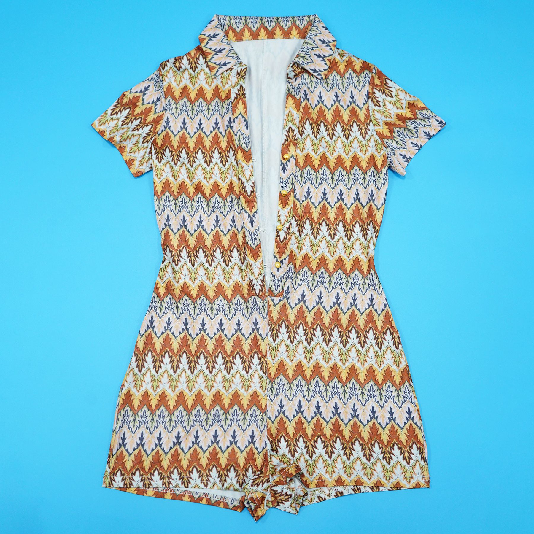 | Product Name | Wave patterned color stripe V-neck short sleeved jumpsuit shorts |